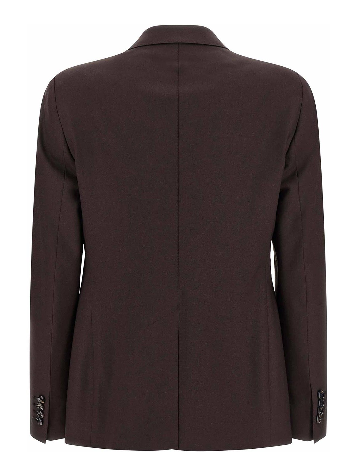 parigiのバイストレッチバージンウールダブルブレストブレザー。フロントボタン留め、ピークラペル、胸ポケット、フラップポケット、パッド入りショルダー、ロングスリーブ、バックスプリット、キュプラ裏地付き。