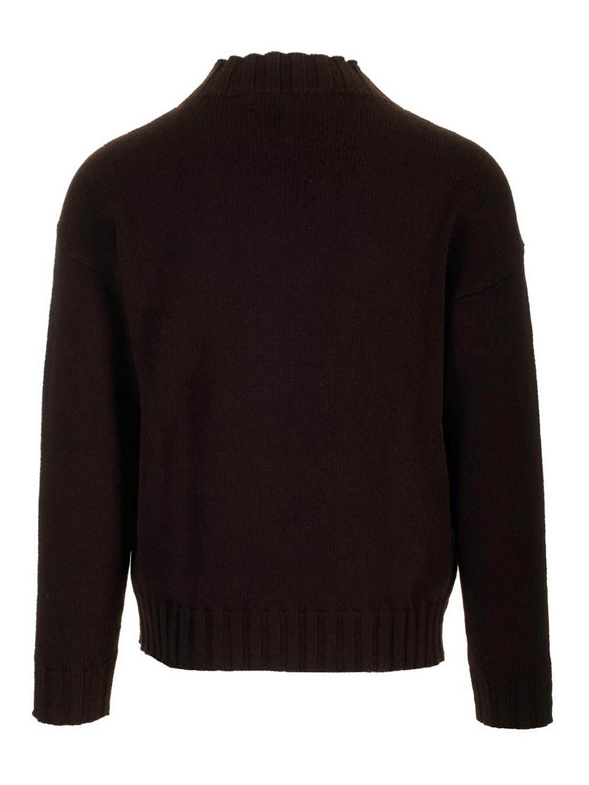 tagliatoreのツートンカラーのセーター。背面は黒と茶色で、カウルカラー、リブ編み、袖口はリブ編み
