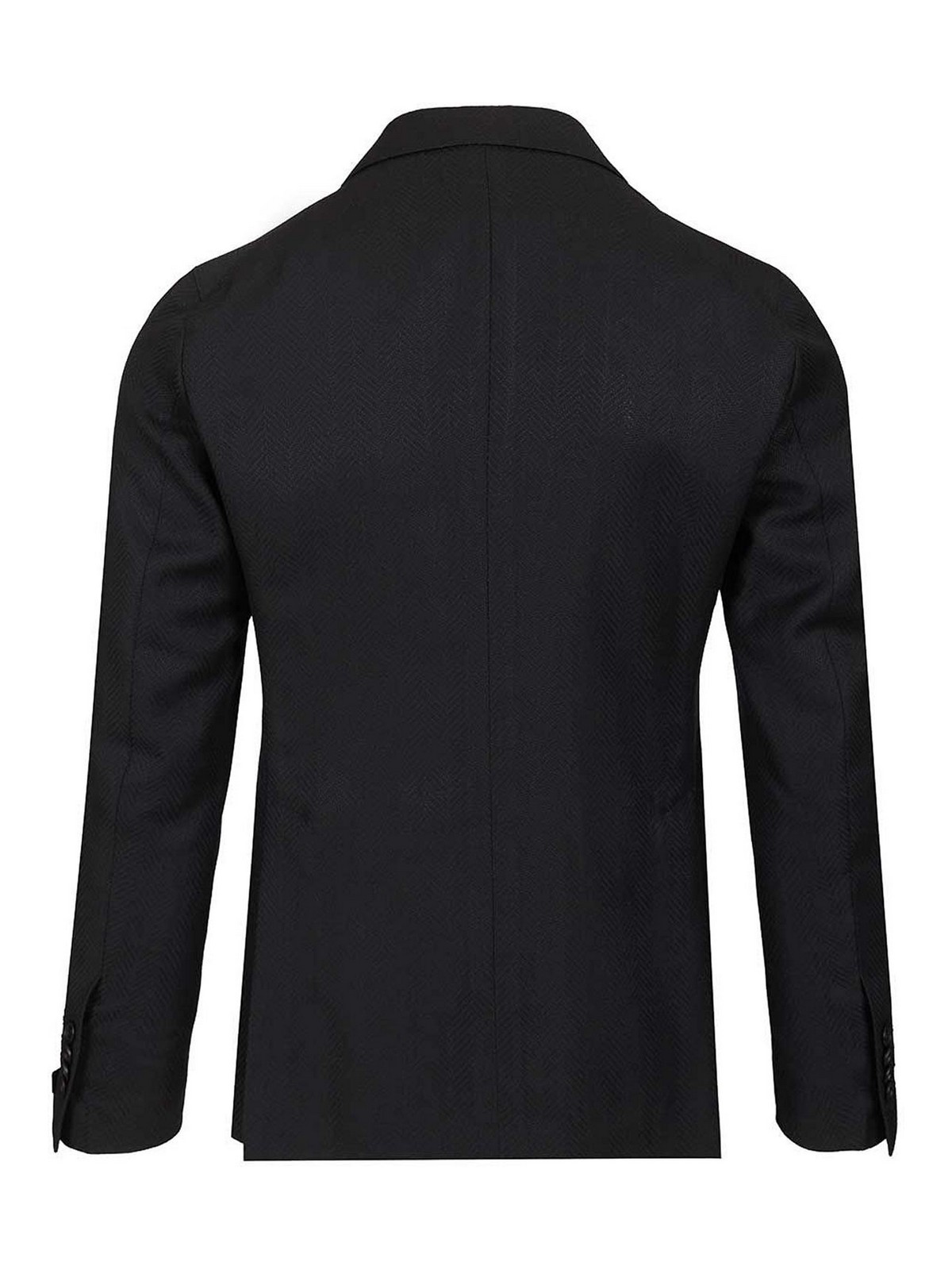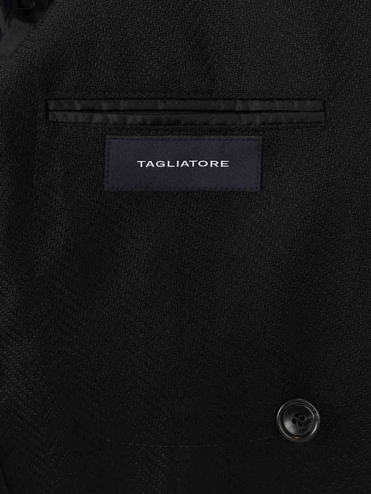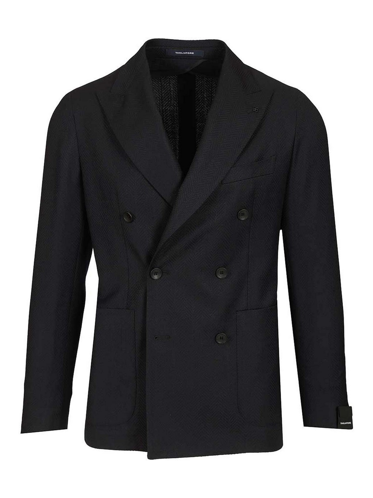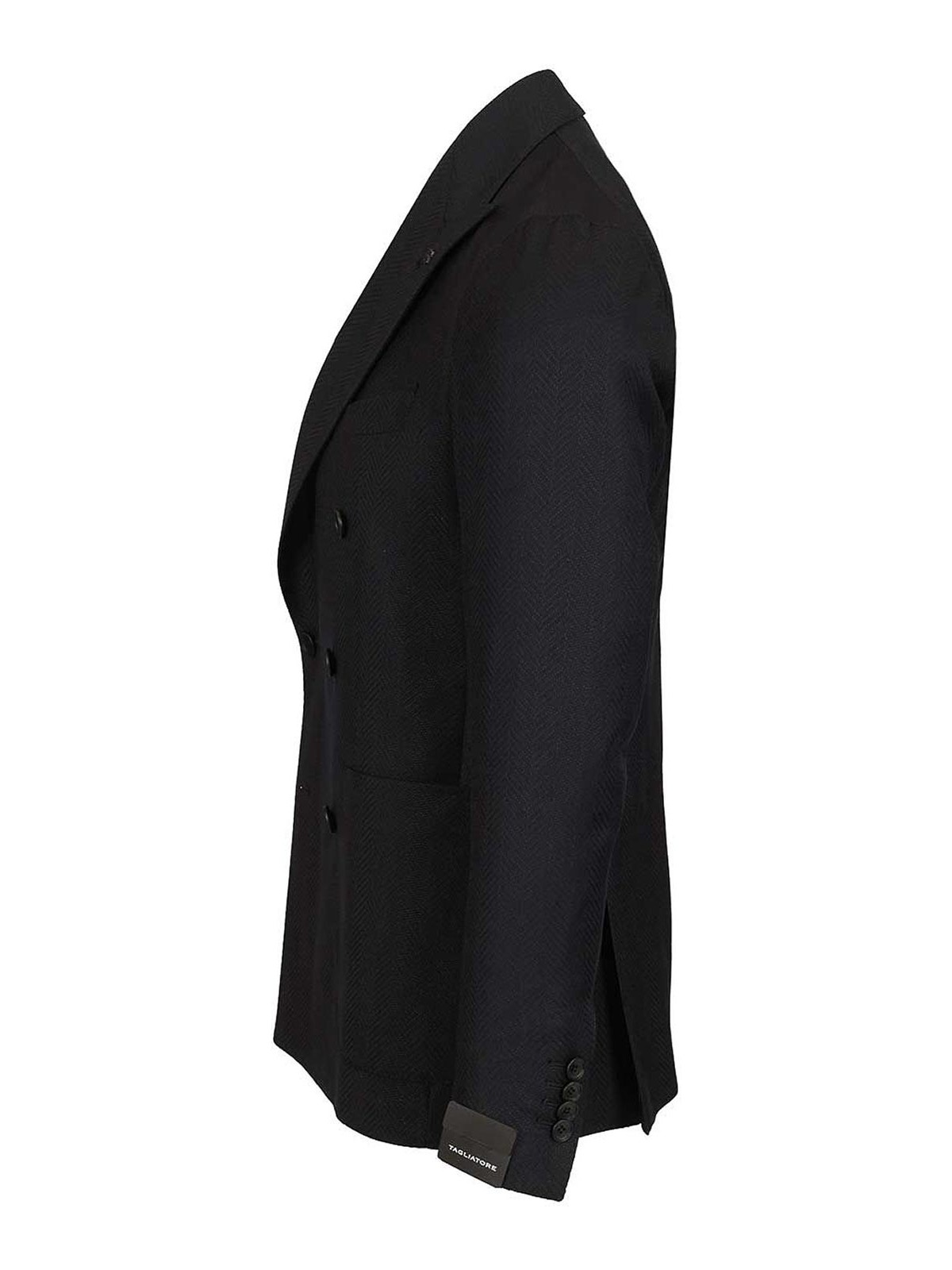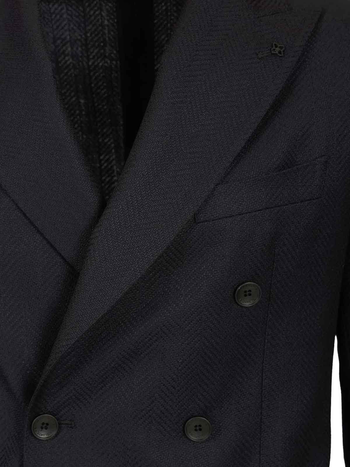 パッチポケットとダブルバックベントヘリンボーン付き裏地なしダブルブレストジャケット