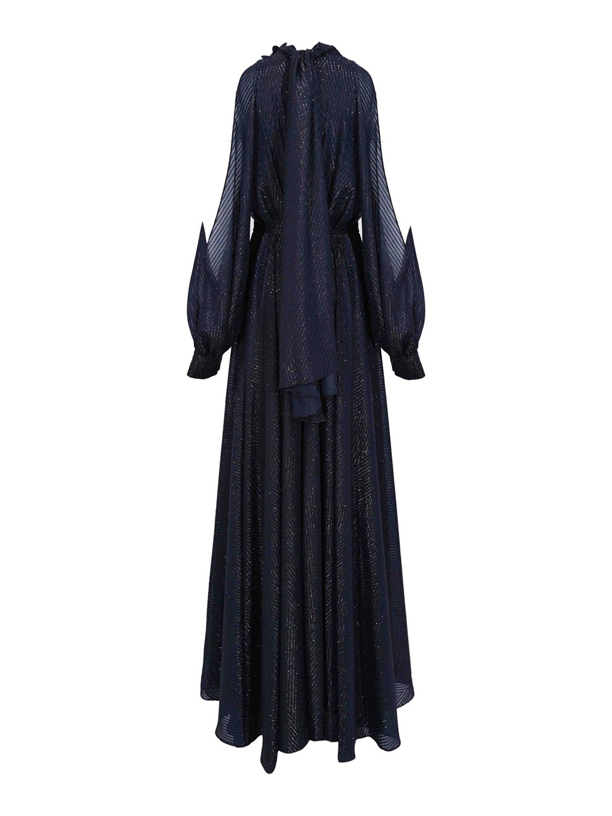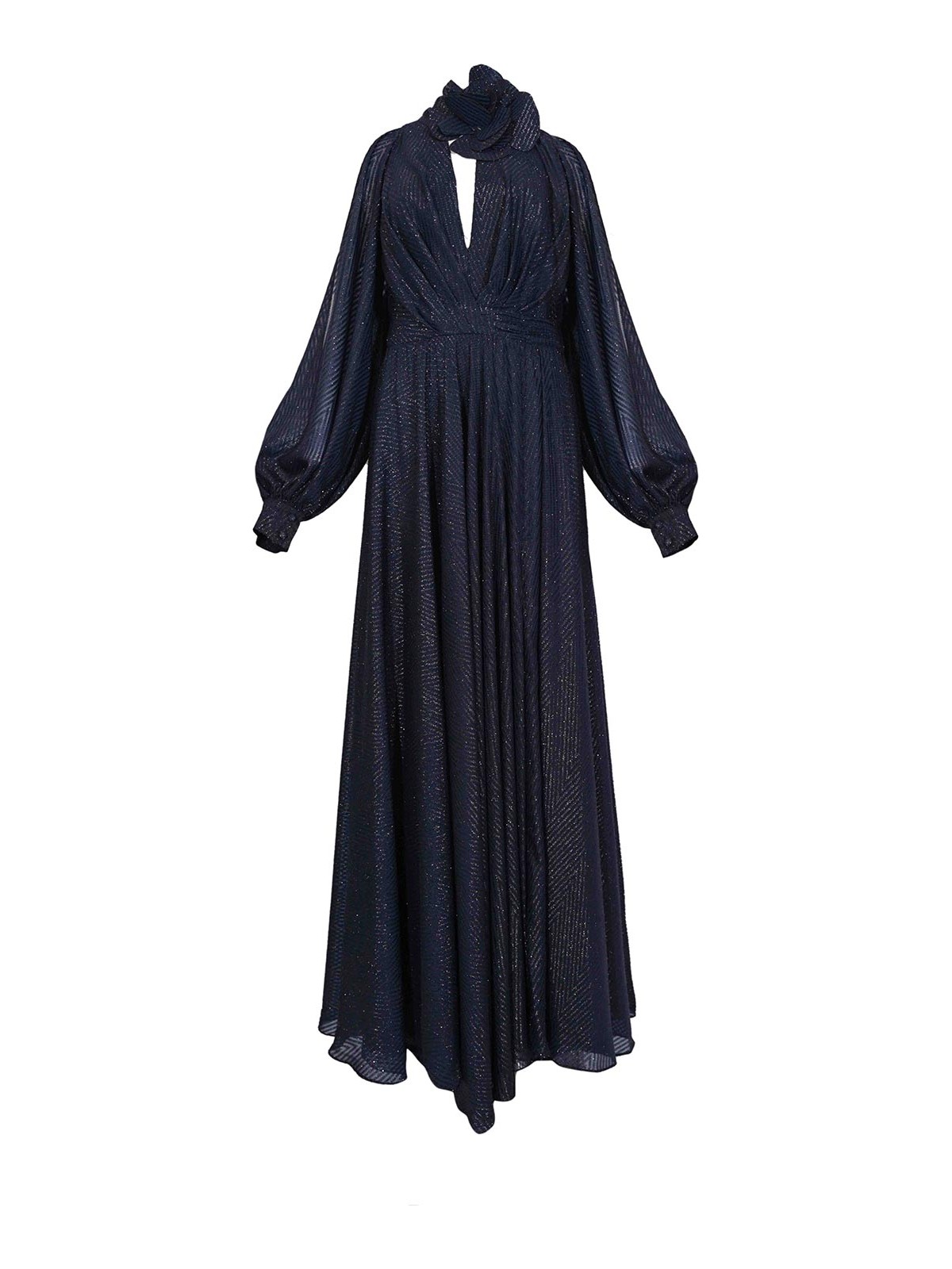 シルクエフェクト生地のロングドレス、Tarik ediz、モデル vinka 99140、生地:シルクエフェクト生地、パターン:鮮やかな仕上がりのソリッドカラー、袖:袖口付きロングワイド、襟:結び目と鍵穴が開いたハイ、クロージャー:背面にファスナー、ポケット:なし、ディテール:流れるようなエレガントなラインのロングドレス、ラミネート加工の質感のあるやや光沢のある生地、前開きのVネック、ハイノットカラー、ボリュームのあるスリーブ、マーク入りのウエストとワイドスカート、柔らかく洗練された仕上がり、裏地:はい、フィット:レギュラー