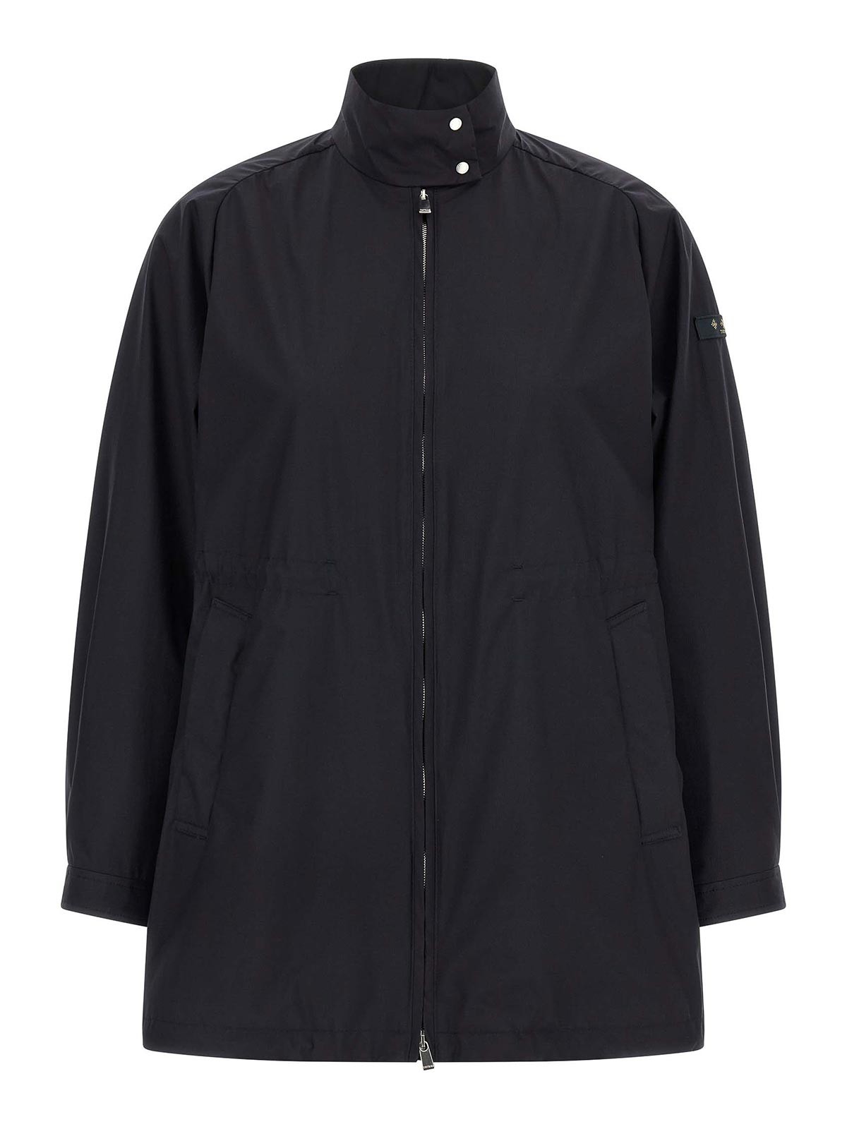 veria'のテクニカルファブリック製ウィンドブレーカー、裏地なし、スナップボタン留めのハイネック、フロントファスナー、ポケット、ウエストにドローストリング、袖口とロゴパッチをあしらったロングスリーブ、裾にドローストリング