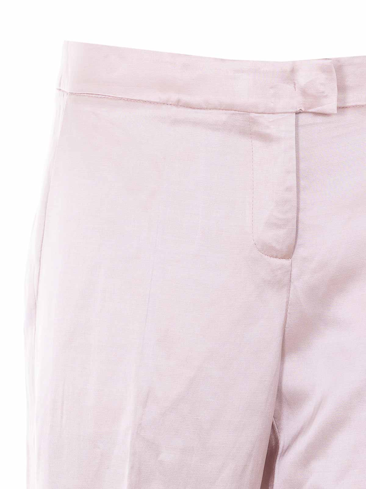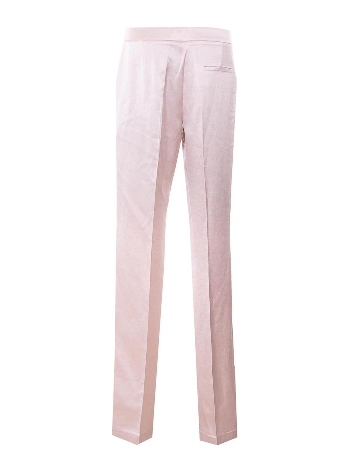 アンダマンピンクグラディスパンツ、ファスナーとフッククロージャー、ストレートレッグ、光沢効果