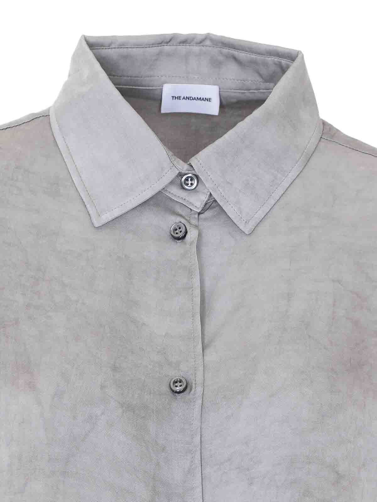 アンダマネオイスターウェンデラセット、フロントボタン留め付きシャツ、レギュラーカラー、ロングスリーブ、フレアパンツ、ウエストゴム入り、クーリスクロージャー、サイドポケット