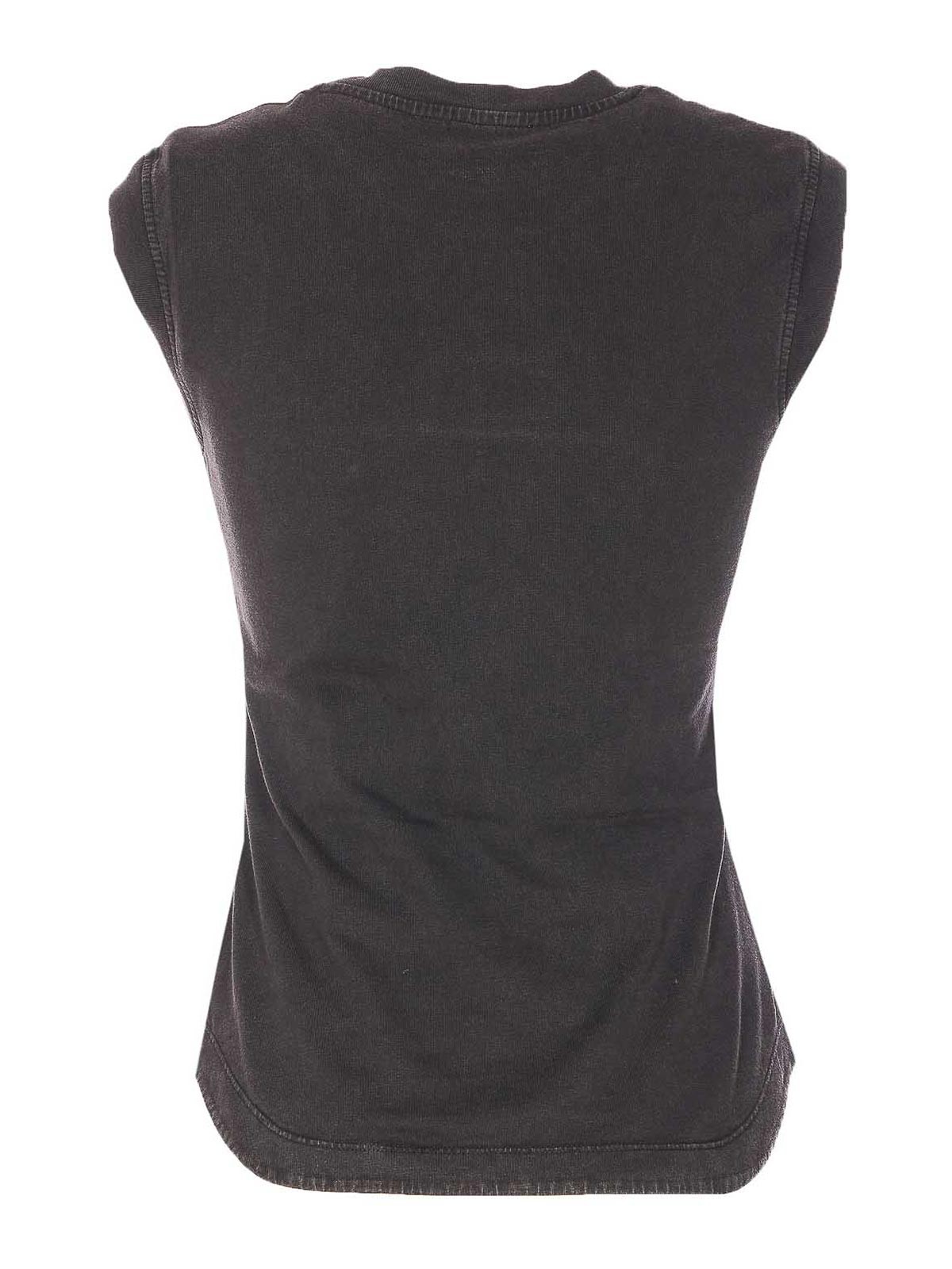 アティコフェードブラックタンクトップ、クルーネック、フロントフロントにロゴ刺繍、ノースリーブ、アシンメトリーモデル