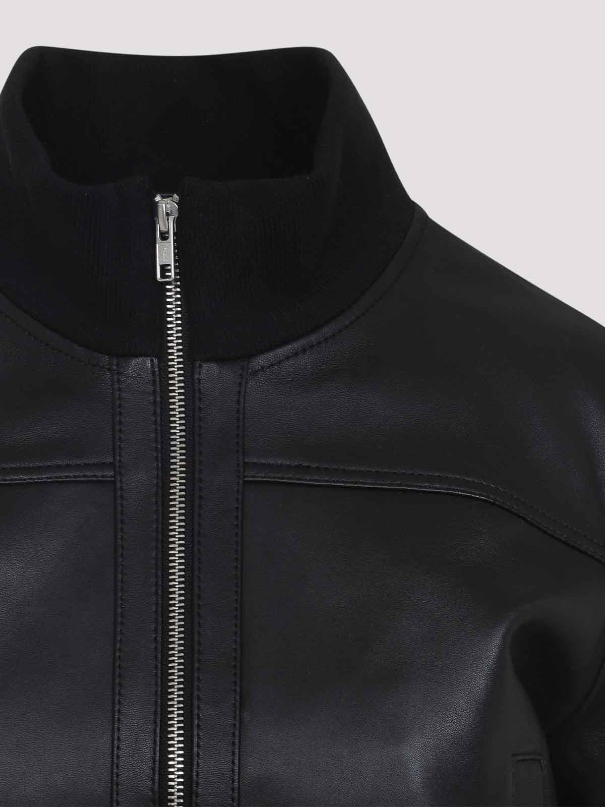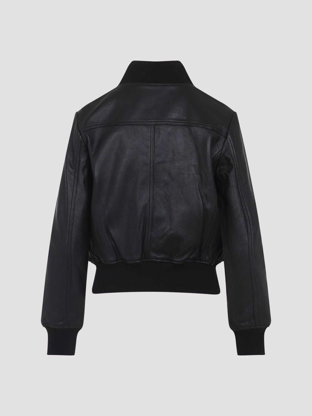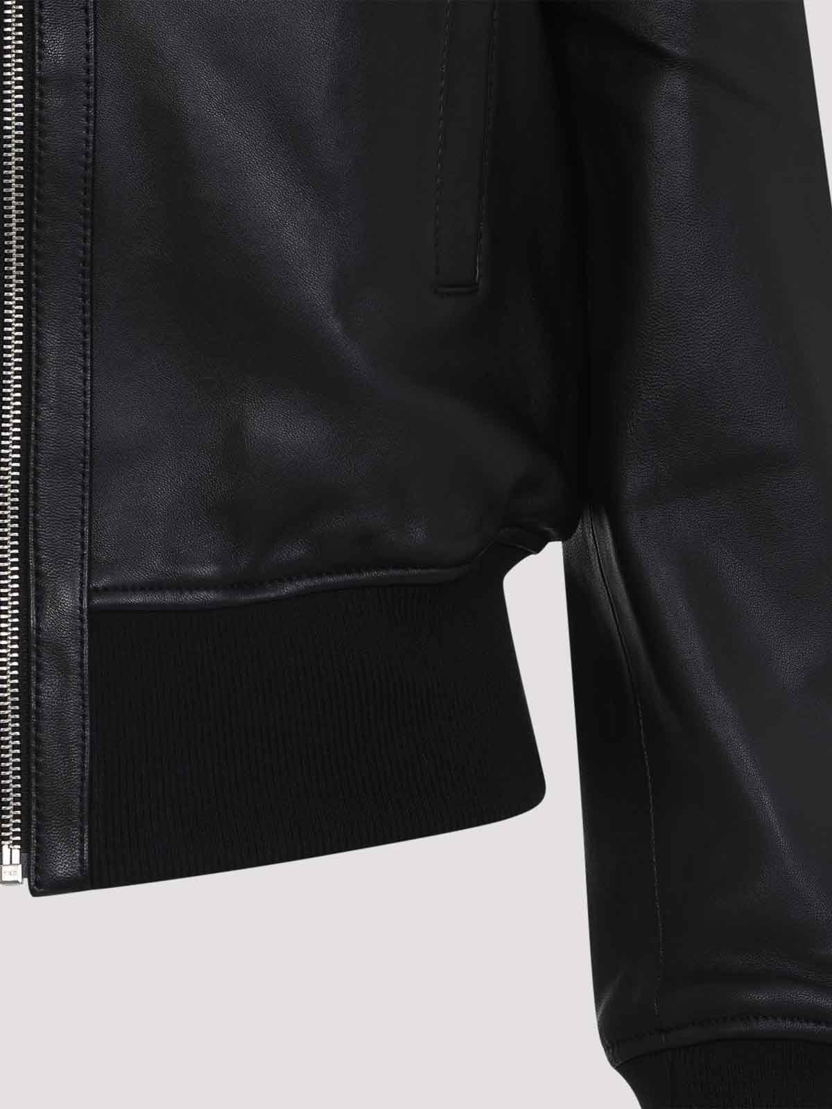 フランキーショップのトビアスブラックラムレザージャケット。ブラックラムレザー製、スタンディングカラー、フロントファスナー、サイドにジップポケット2つ、ロングスリーブ、バックヨーク、リブ編みのエッジ。