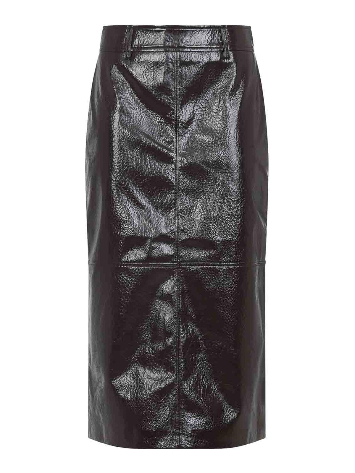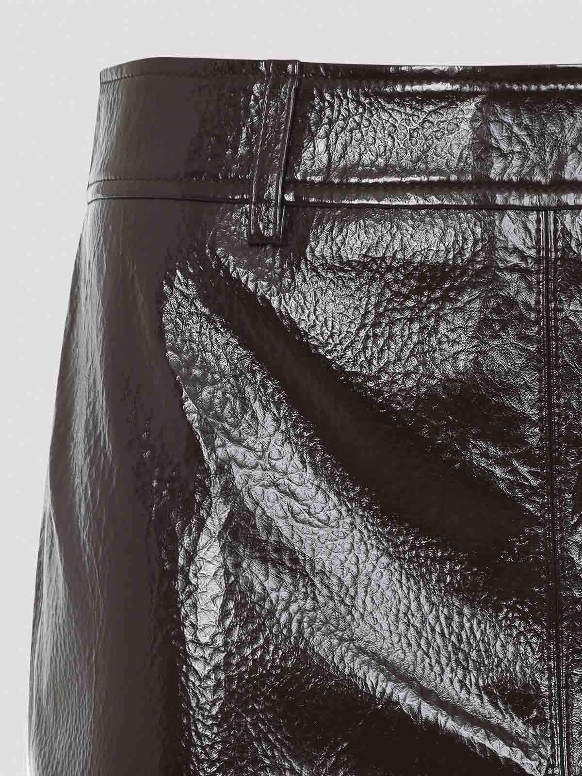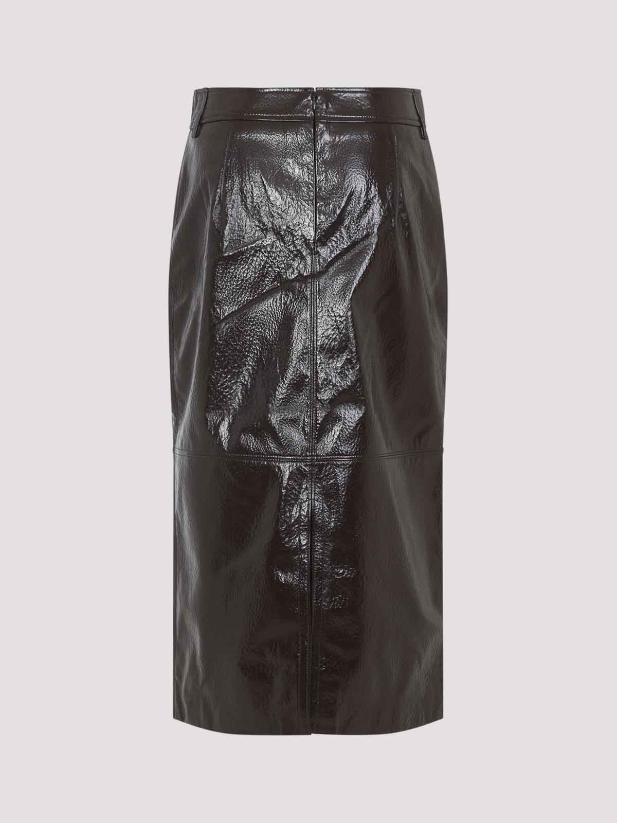 The Frankie Shop ブラウン Taney クラックルペンシルスカートクラフトベルトループバックファスナー付きトーナルステッチペンシルデザインミディ、レングス、ストレートヘム、グレインエフェクト