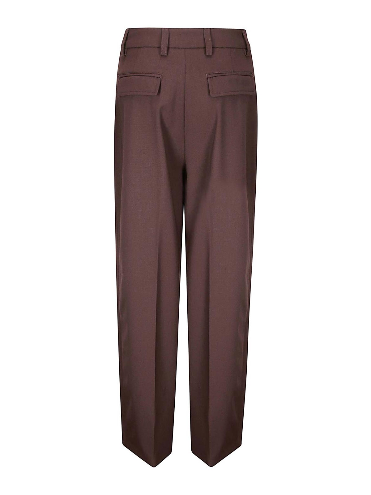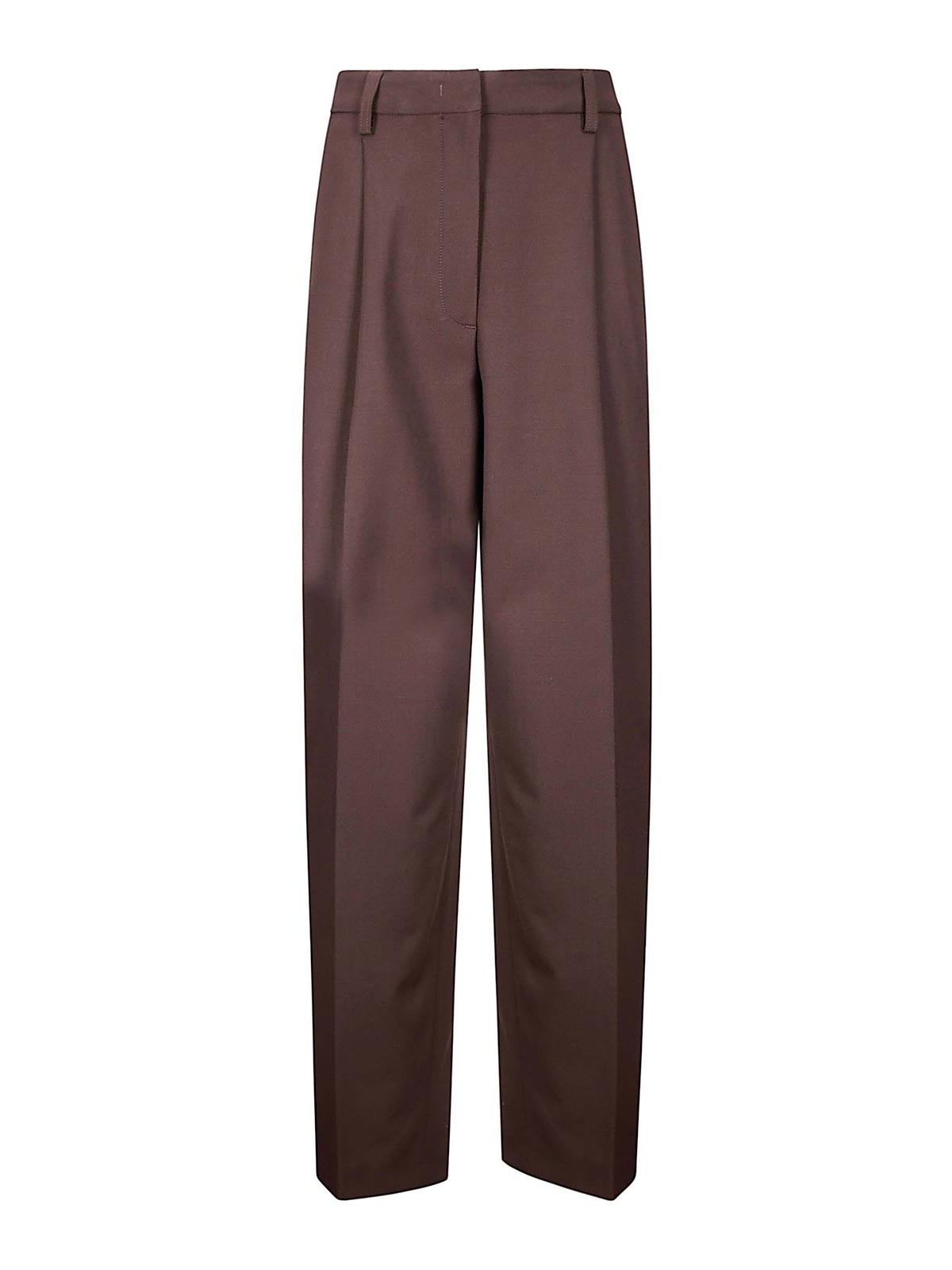 フロントジッパーとフッククロージャー付きパンツ、ポケット2つ、ダーツとプリーツ付きのワイドレッグ、ルーズフィット。