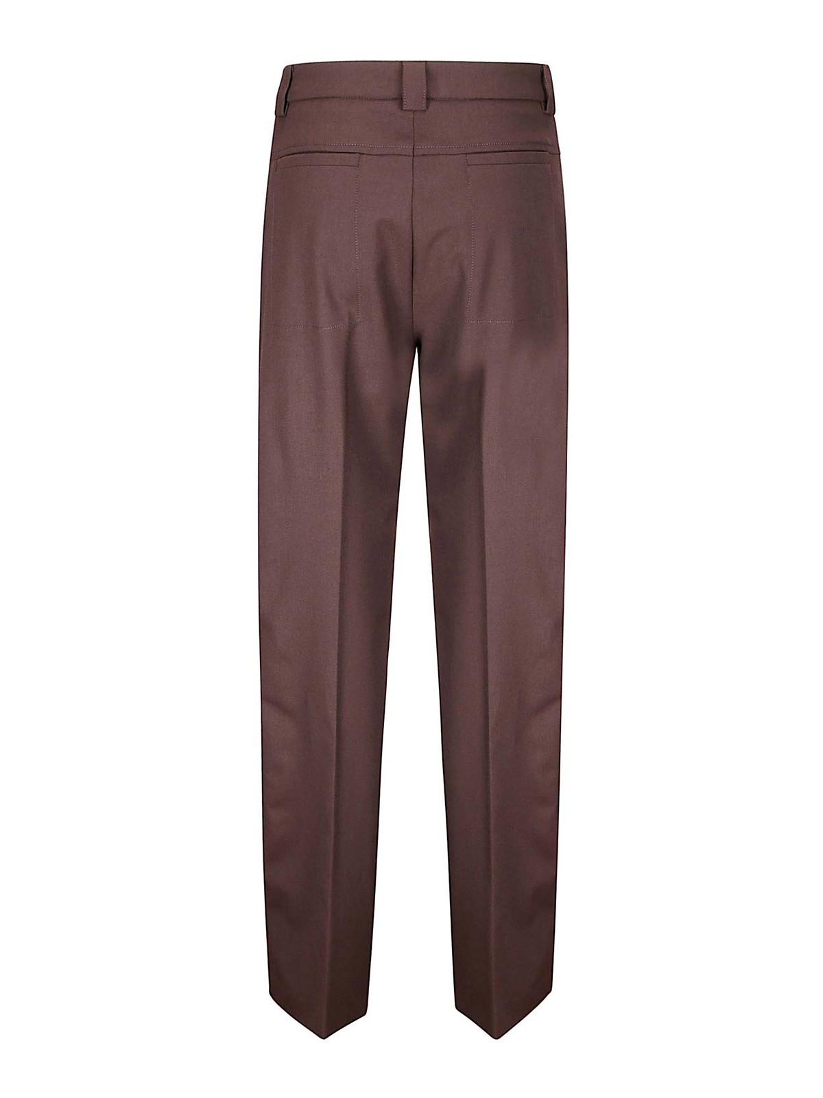 ジップとボタンフック付きのズボン、プリーツ付きのワイドレッグ、レギュラーフィット。