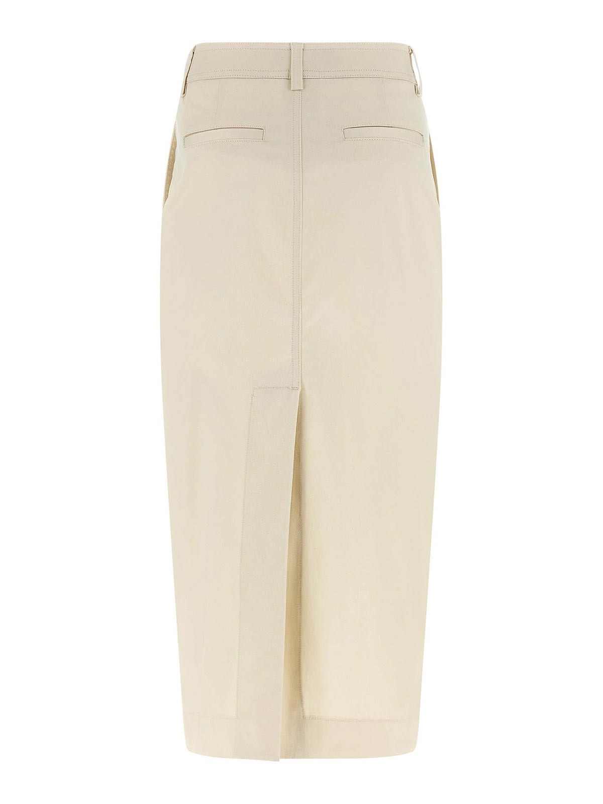 Donna' コットンギャバジン製ミディスカート、シーススカート、フック、フロントボタンファスナー、ポケット、バックスプリット、裏地なし。