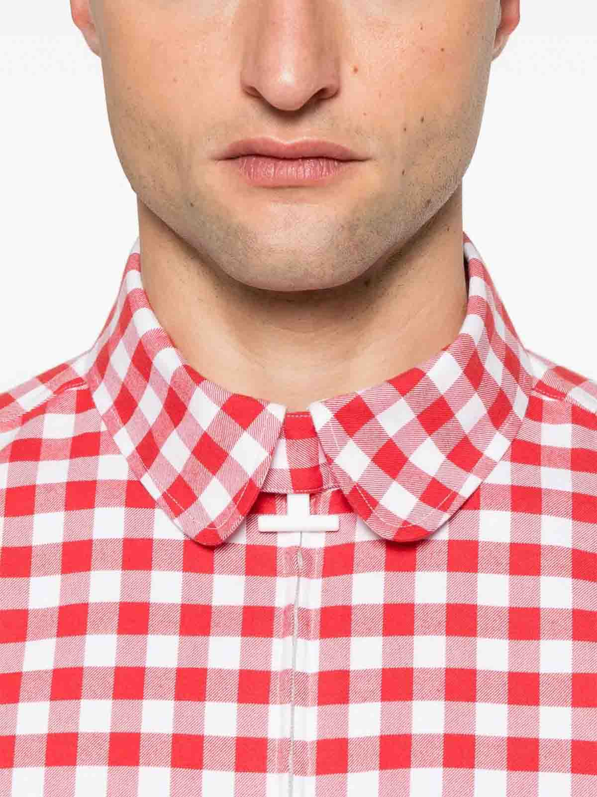 ブライトレッド、フロントファスナー、ボタン付きカフス、胸パッチポケット、プリーツディテール