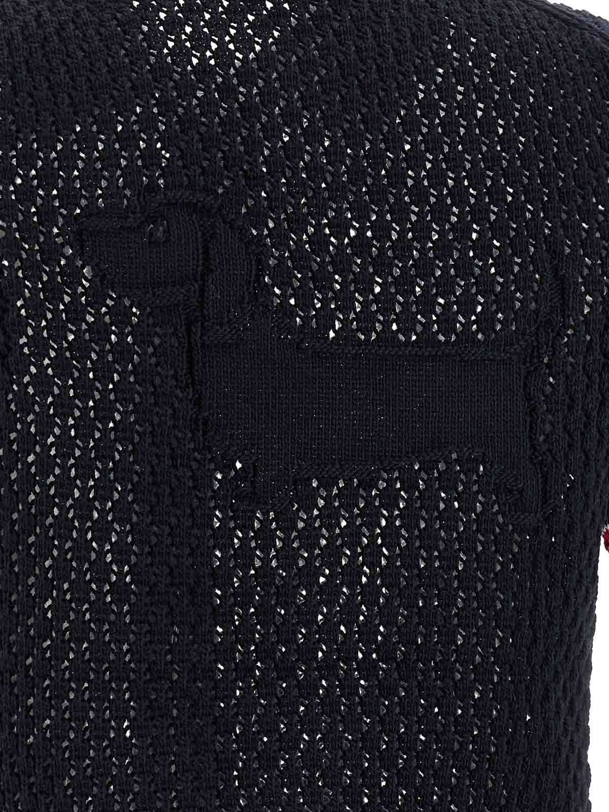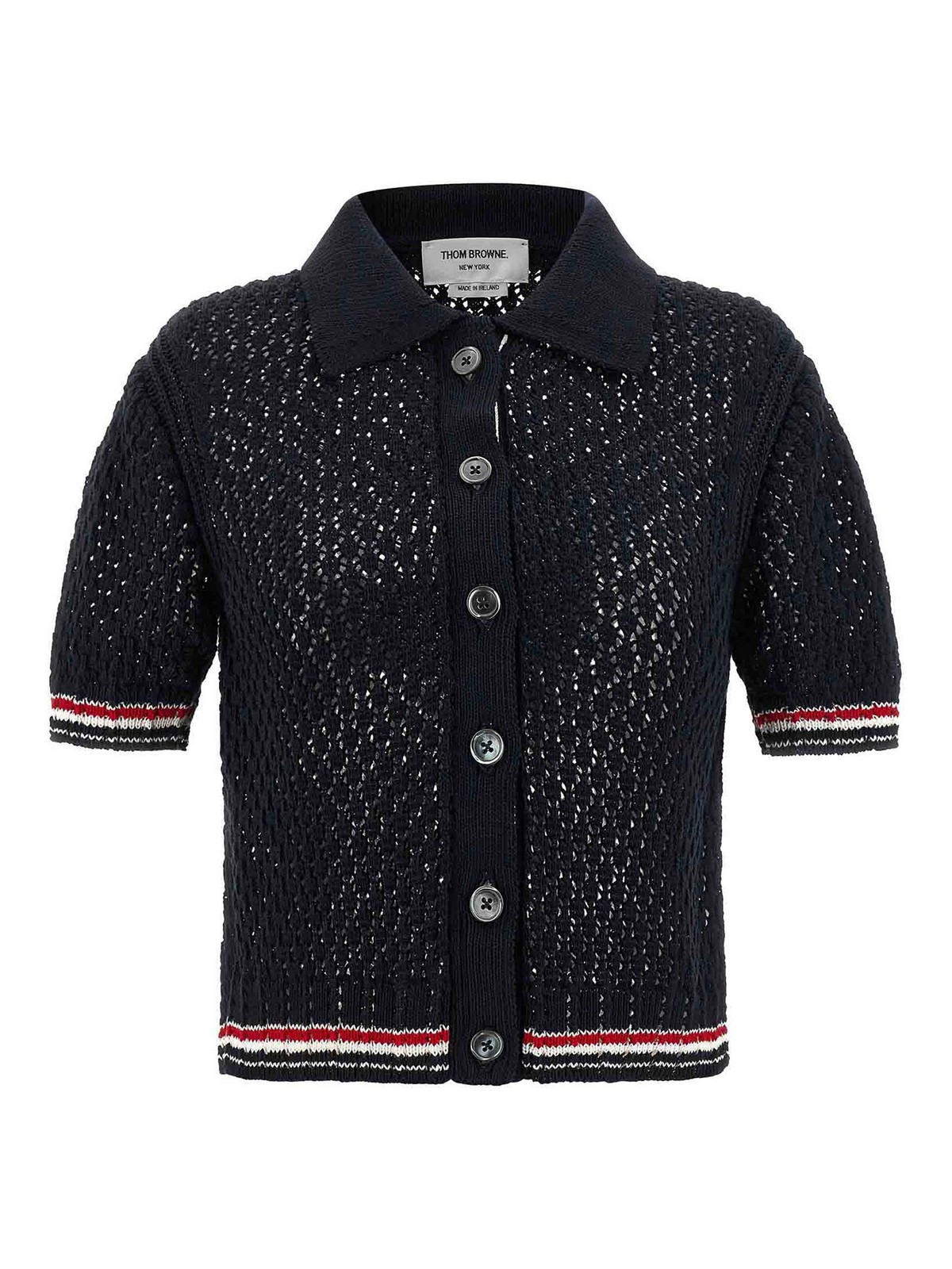透かし彫りの「ヘクター・ポインテル」コットンニットのポロシャツ。シャツの襟、フロントボタン留め、「rwb」グログランが特徴。端に「rwb」のインターシャをあしらったショートスリーブ。