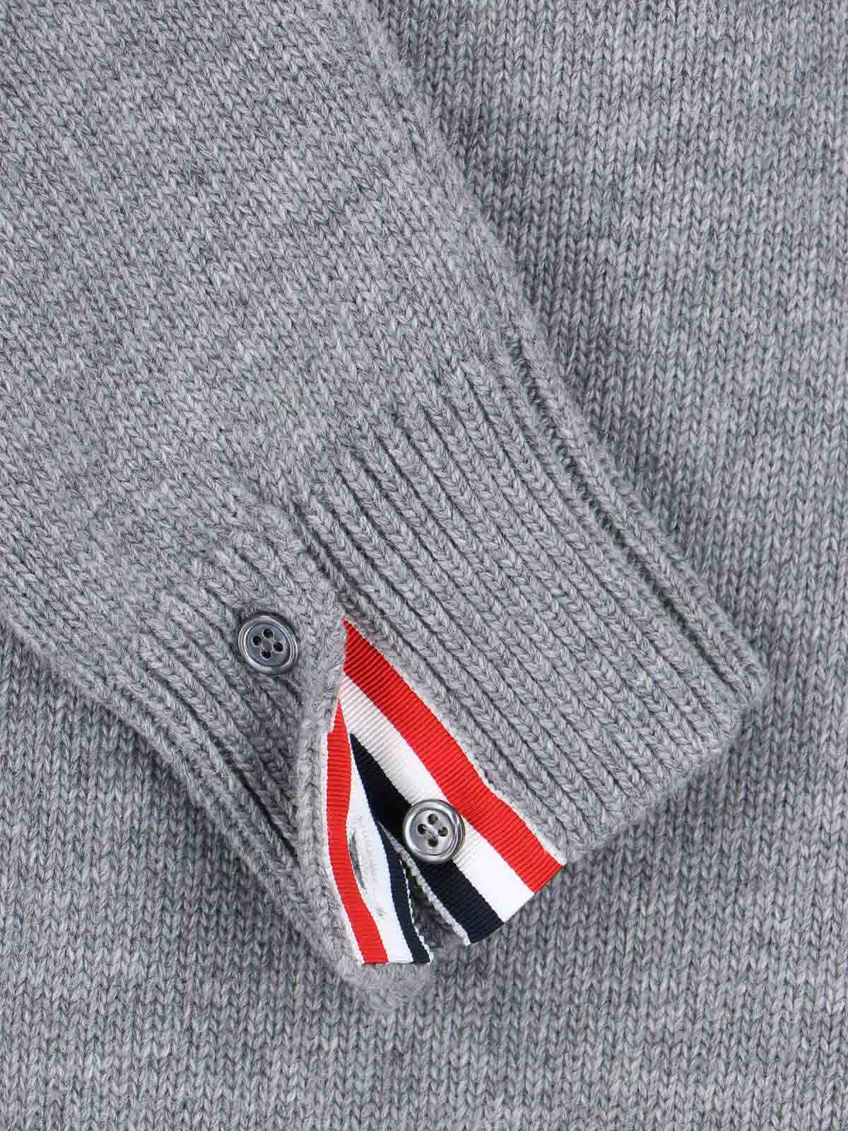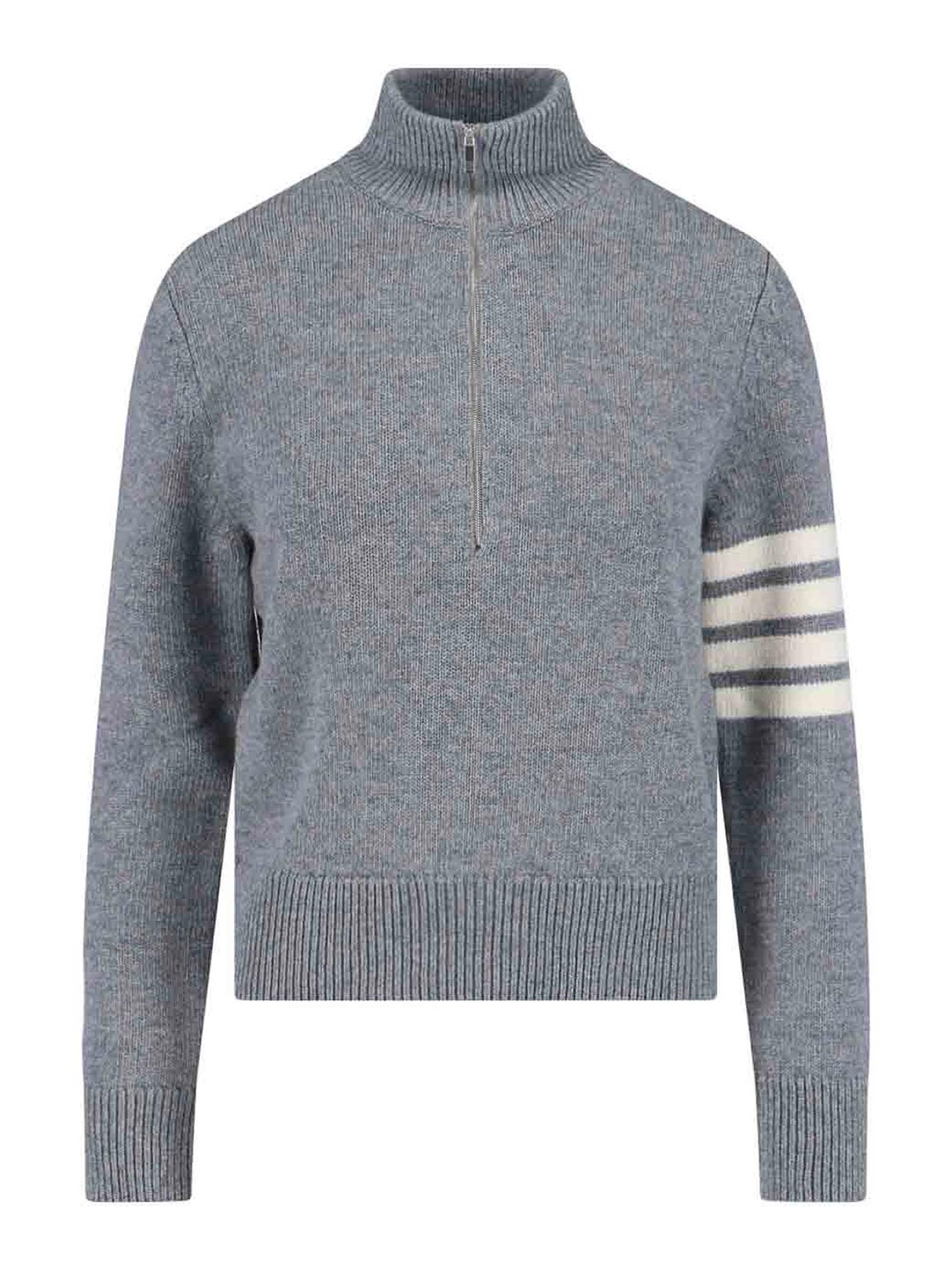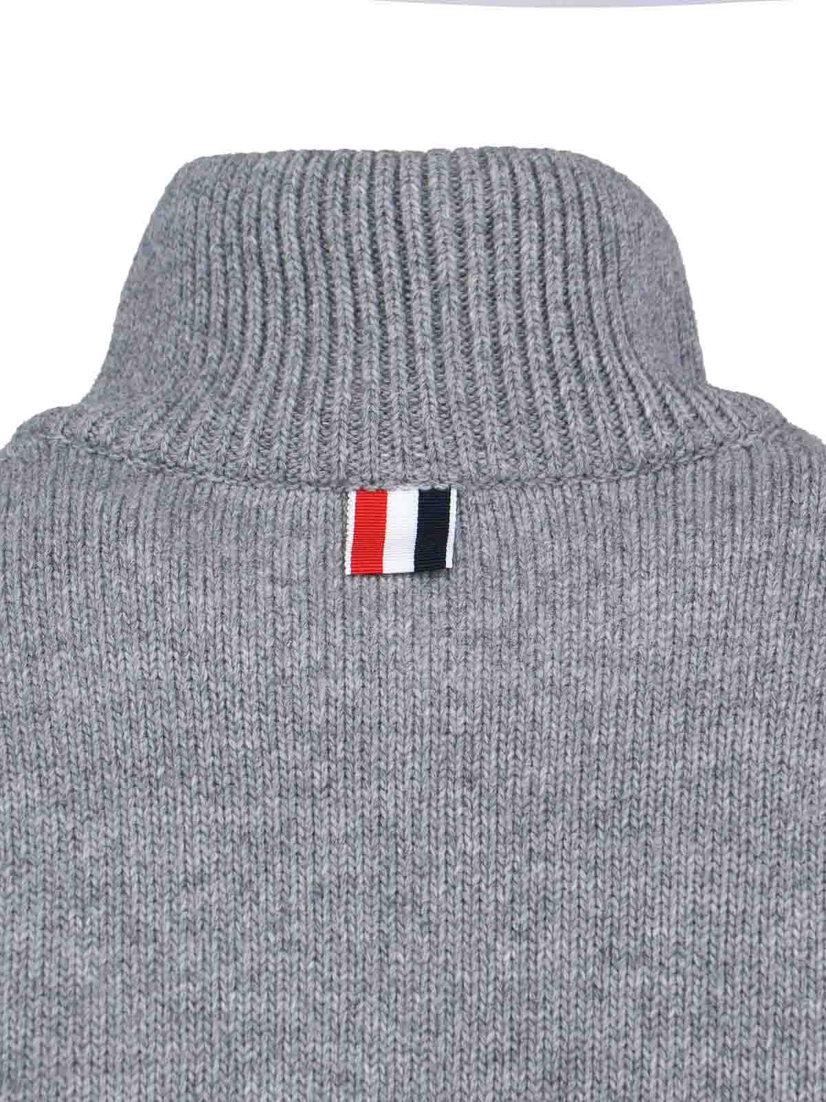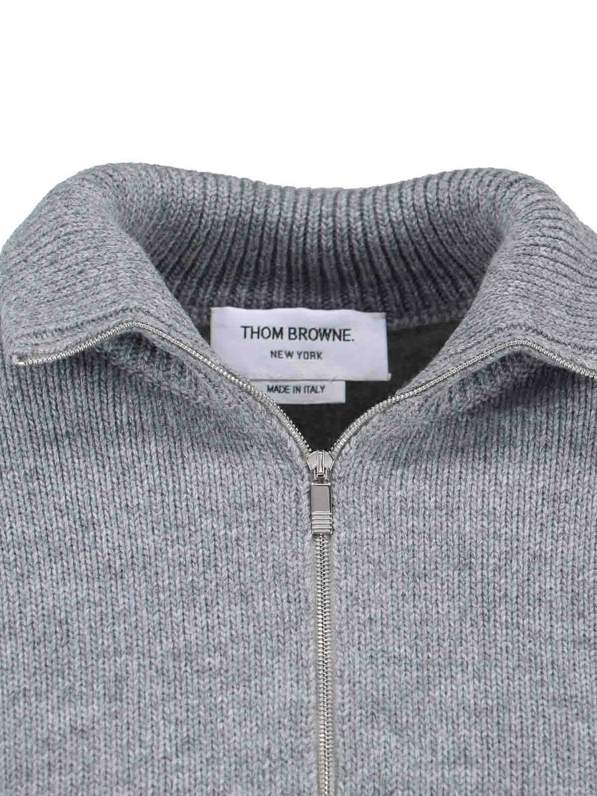 Thom Browne 4BARジップセーター、グレーバージンウール、ハイカラー、ジッパー、袖の4バーディテール、リブ仕上げ、ストレートヘム。
