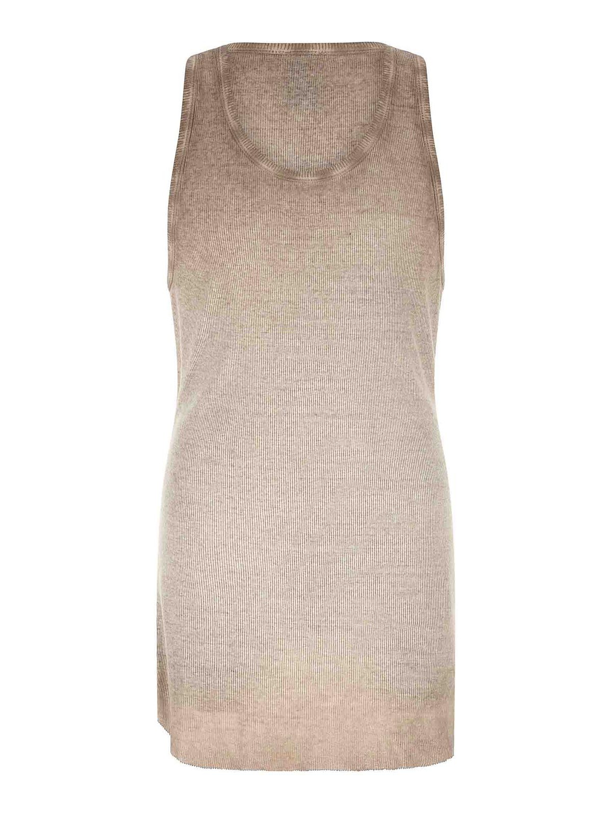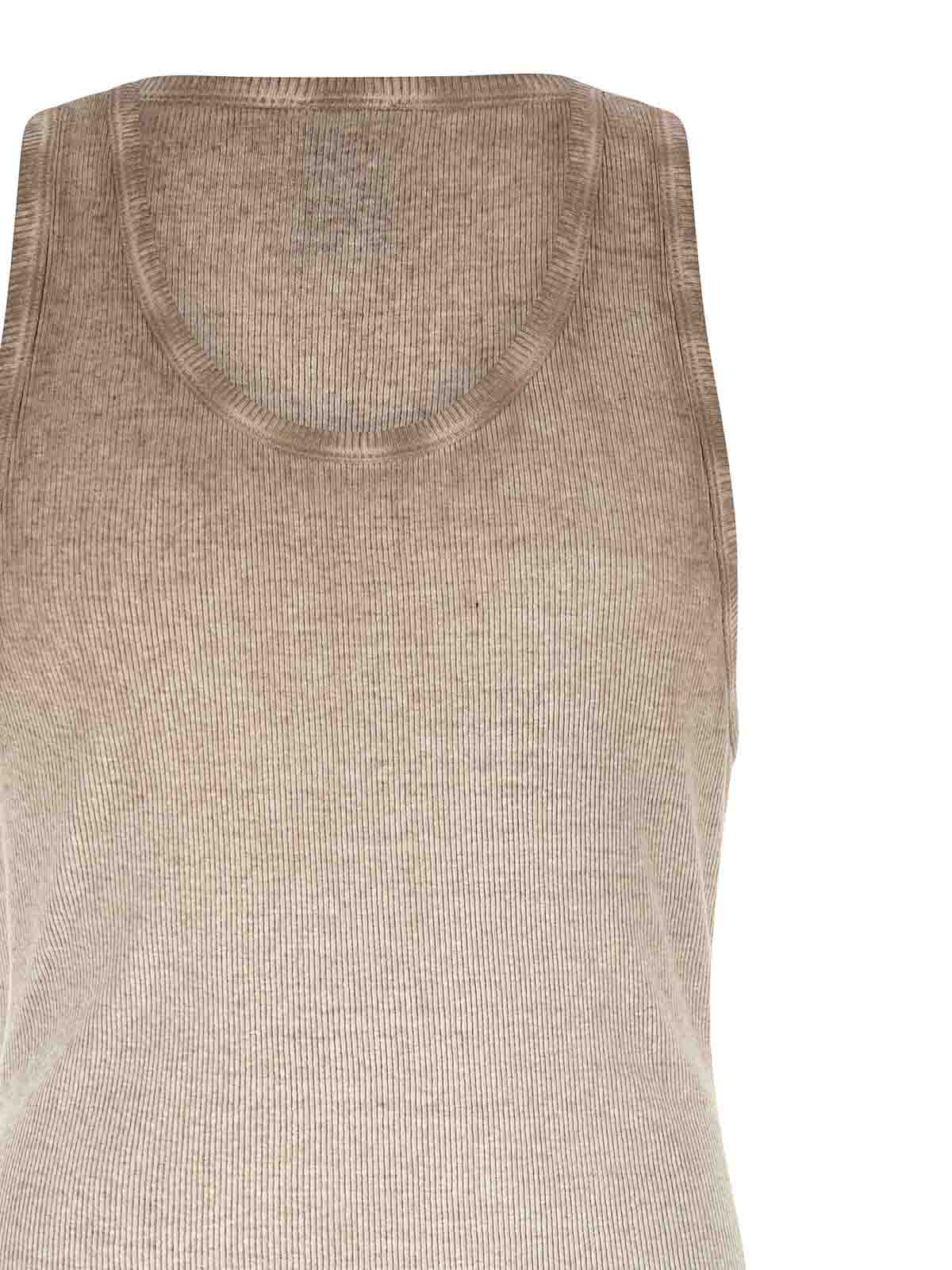 DLAV エフェクトを施したリブ編みのコットンとリネンの混紡素材を使用した947フィートのタンクトップ、ラウンドネック、丸みを帯びたヘム、ローカットヘム。