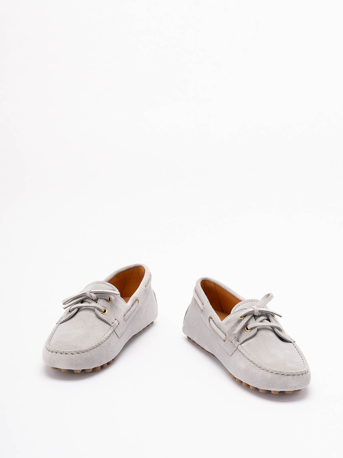 スエードの Boat Gommino モカシン。航海の世界にインスパイアされ、エレガントに再解釈されています。スエードのアッパーとクラシックなペブルドソールを組み合わせることで、柔軟性と快適さ、洗練されたカジュアルスタイルを実現しています。