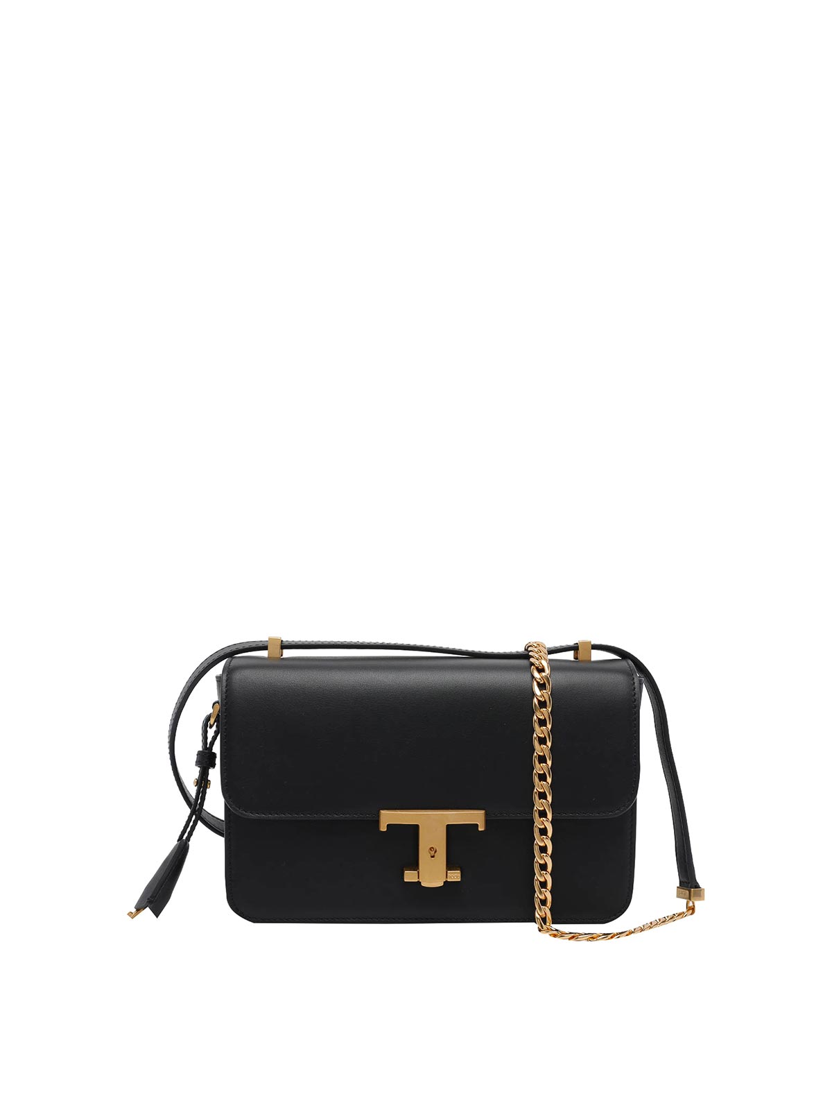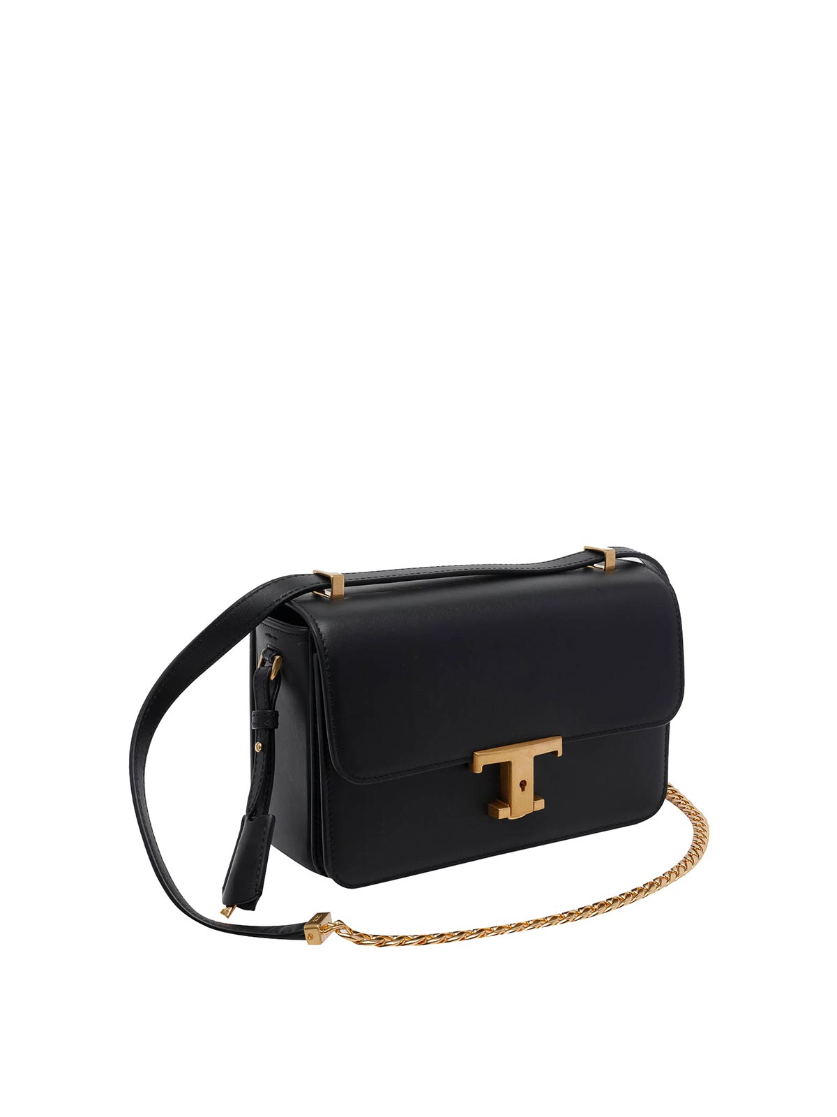 Tod's ブラッククロスボディバッグ、プッシュロッククロージャー、3つのコンパートメント、調節可能なスライド式ショルダーストラップ