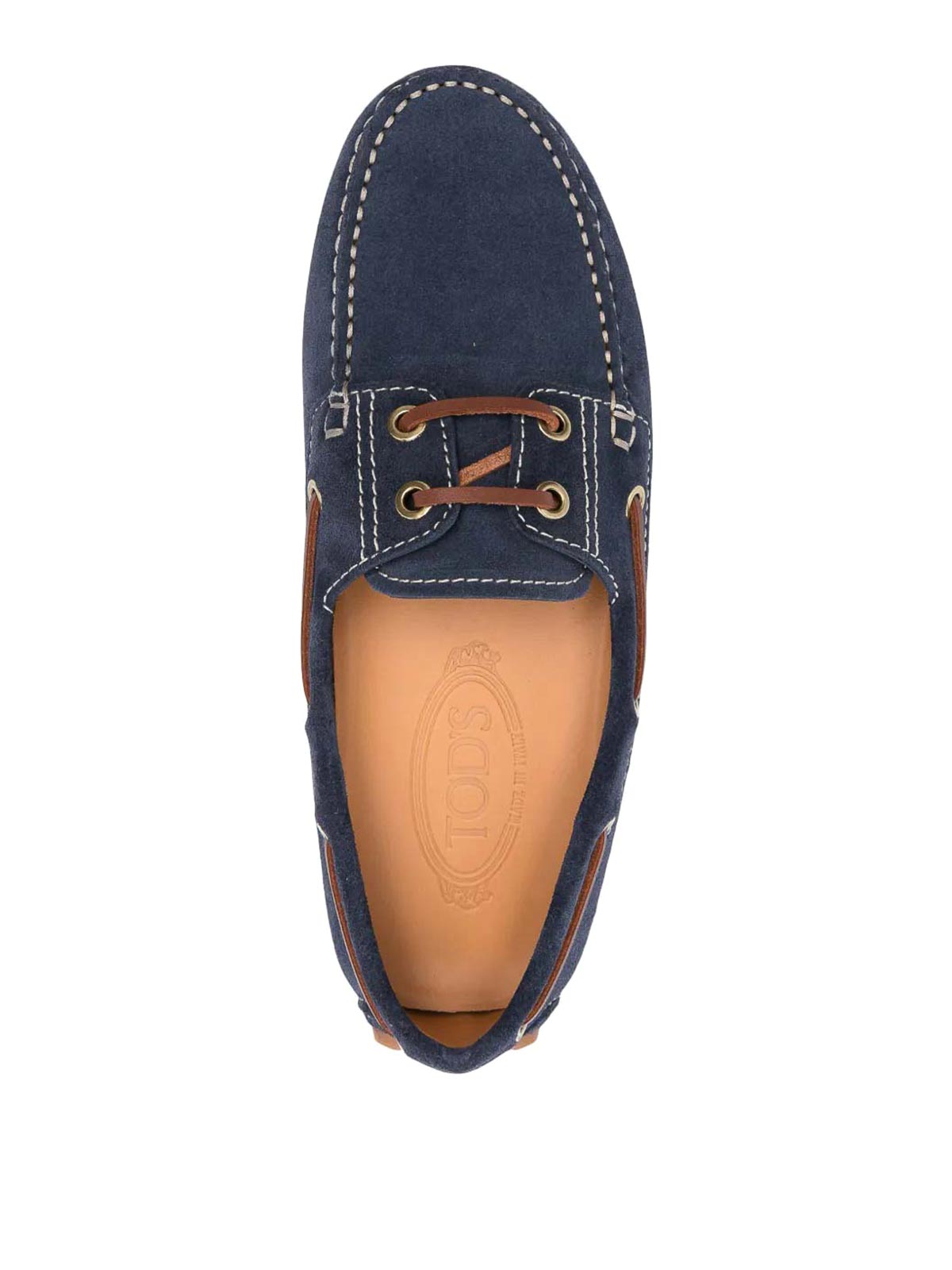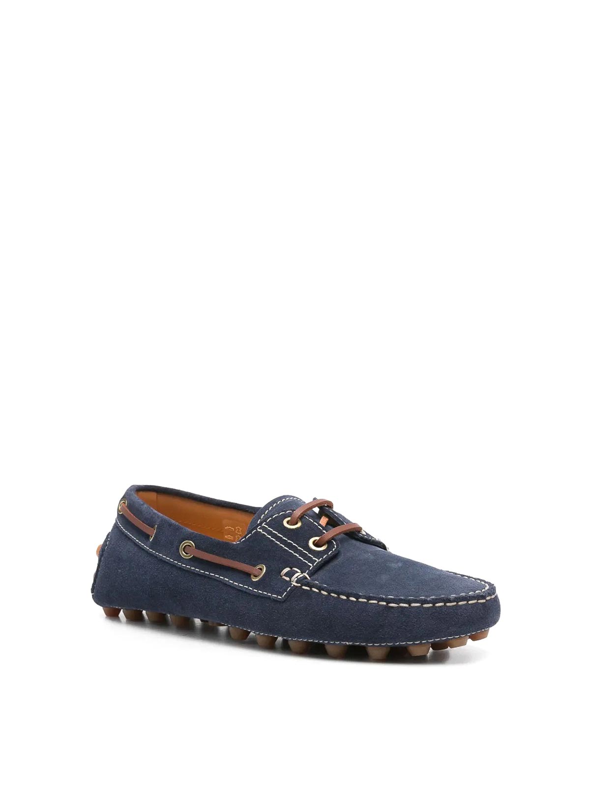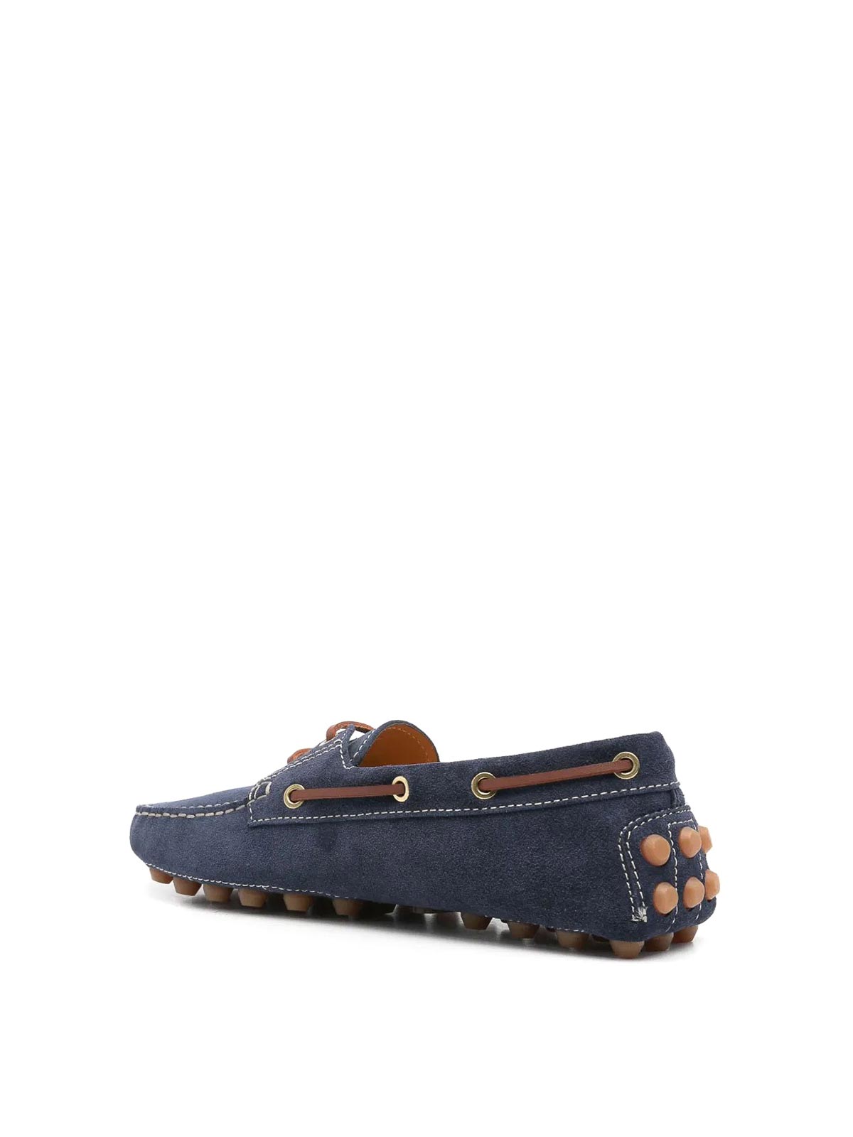 デザイナーネイビーブルーレースアップホイップステッチトリムラウンドトゥシグネチャーゴムミノ