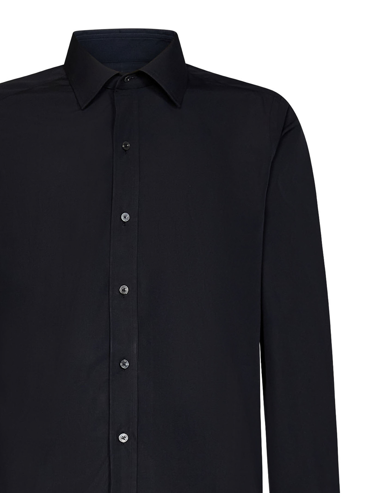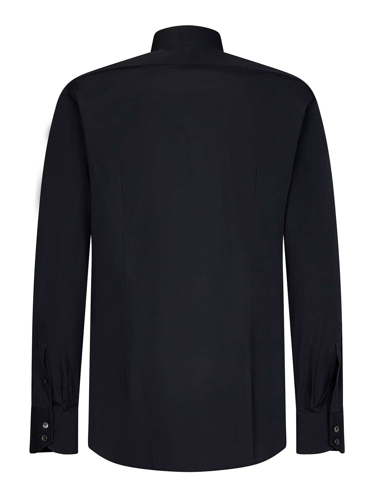 フロントボタン留めクラシックカラーロングスリーブ 2ボタンバレルカフスストレートヘムクラシックフィットブラックコットンの写真のアイテムは首回りに相当します