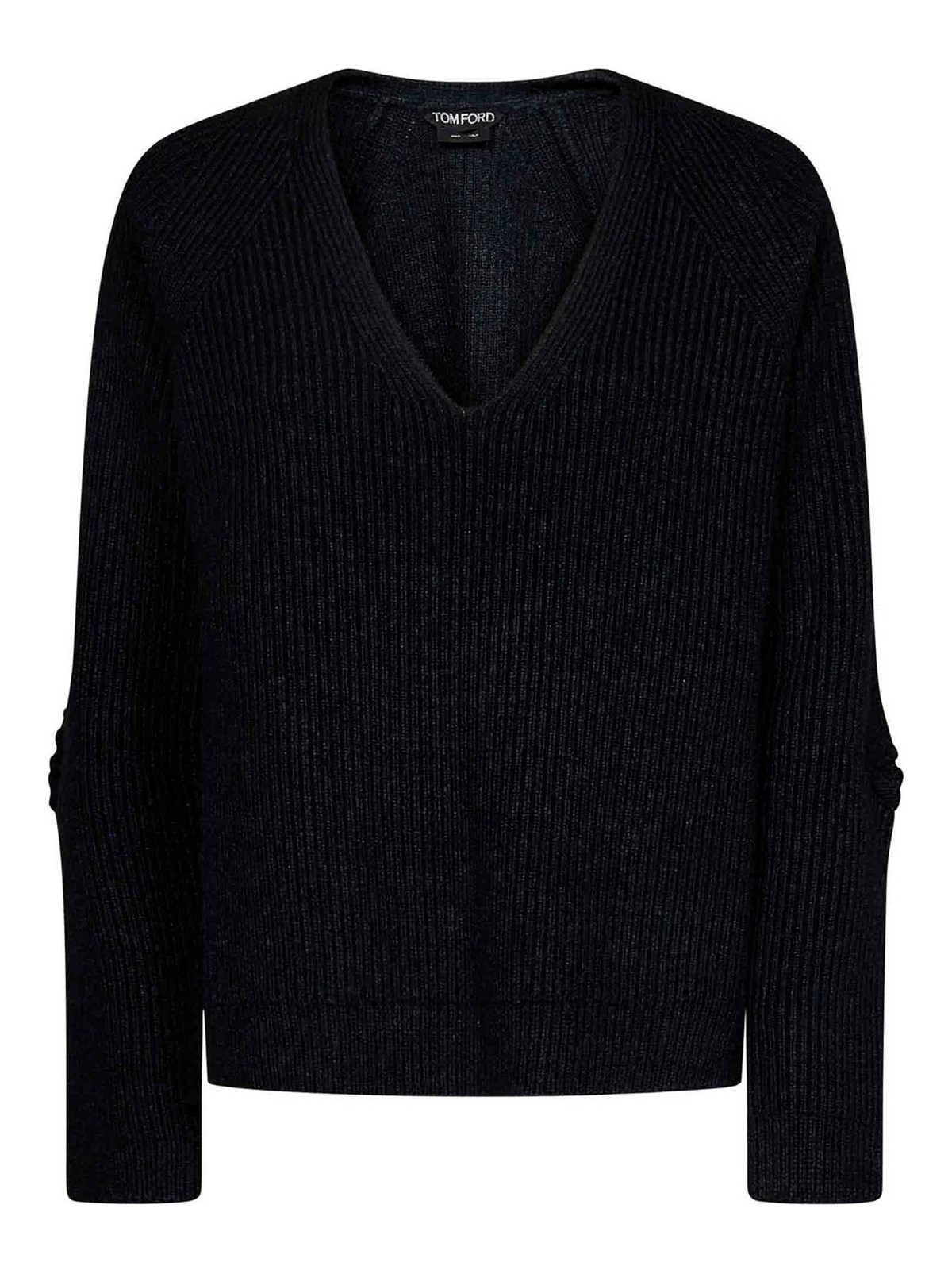 Vネック、長袖、肩、リブ編み、裾と袖口、トーンオントーン、エルボー、ルーズフィット、ブラック、カラー:写真のアイテムはSサイズに対応しています