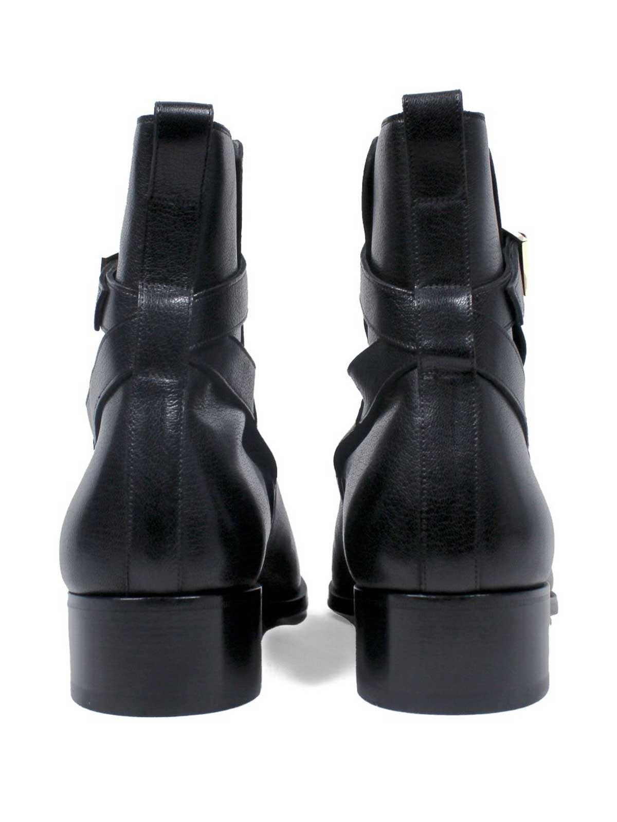 Origin Italyは、かかとに幅の狭いストラップタブが付いたバックル付きのブラックが特徴です