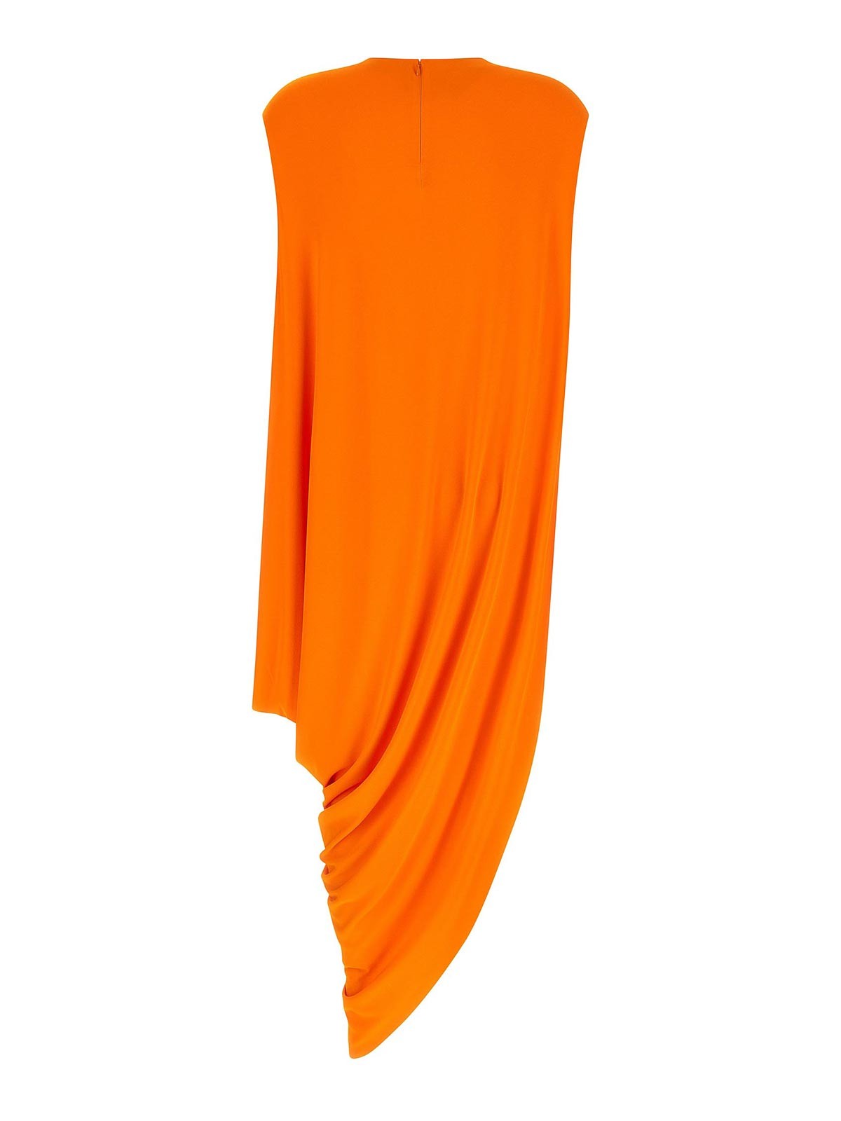 ダブルジャージークレープのインポッシブル・アシンメトリー・キャップ・トップ、3Dマシニング、クルーネック、片側が完全に開き、もう片側が閉じたドレープモデル。非対称、バッククロージャー、隠しジッパー付き。