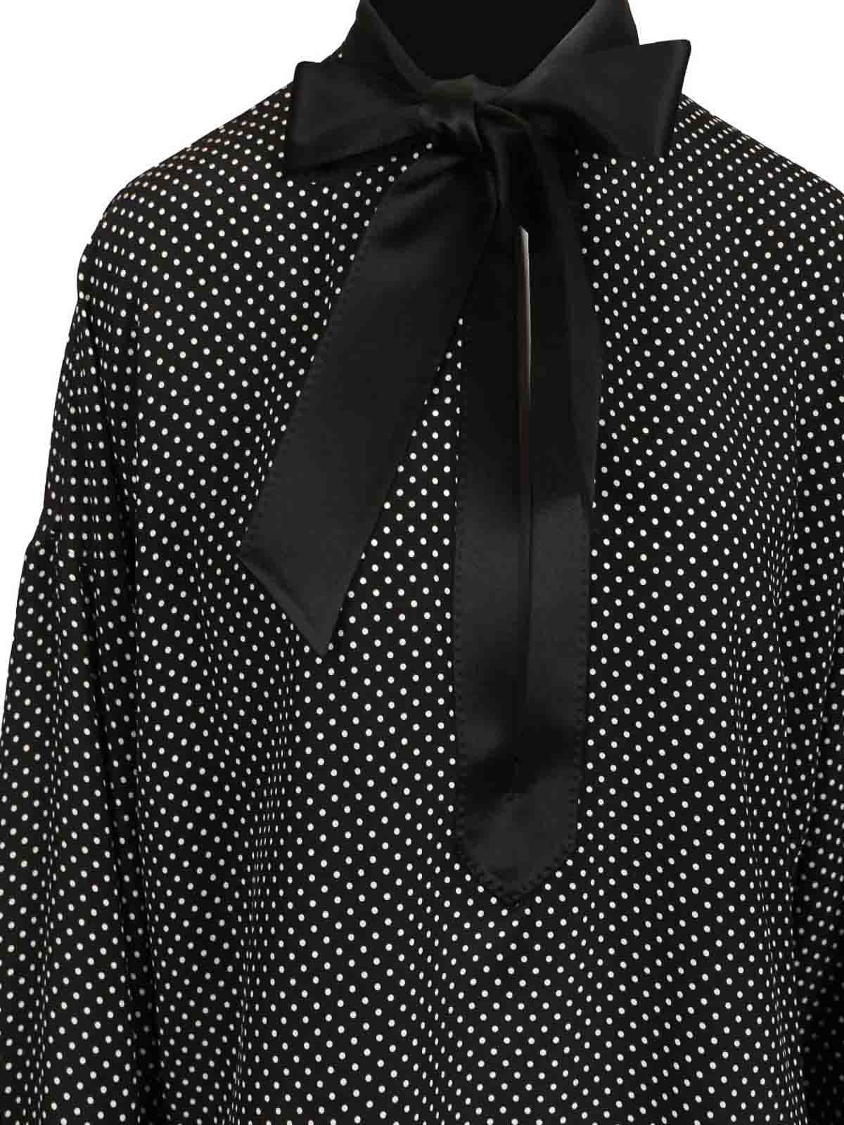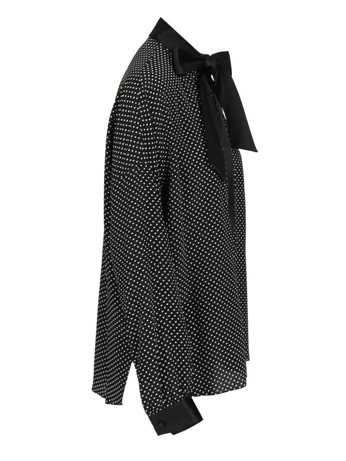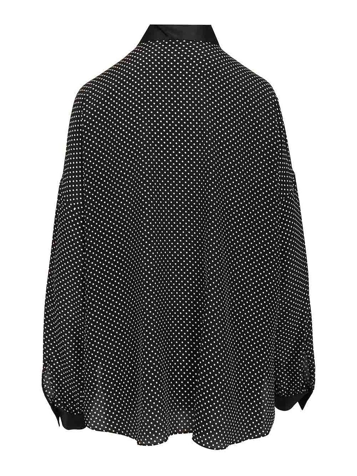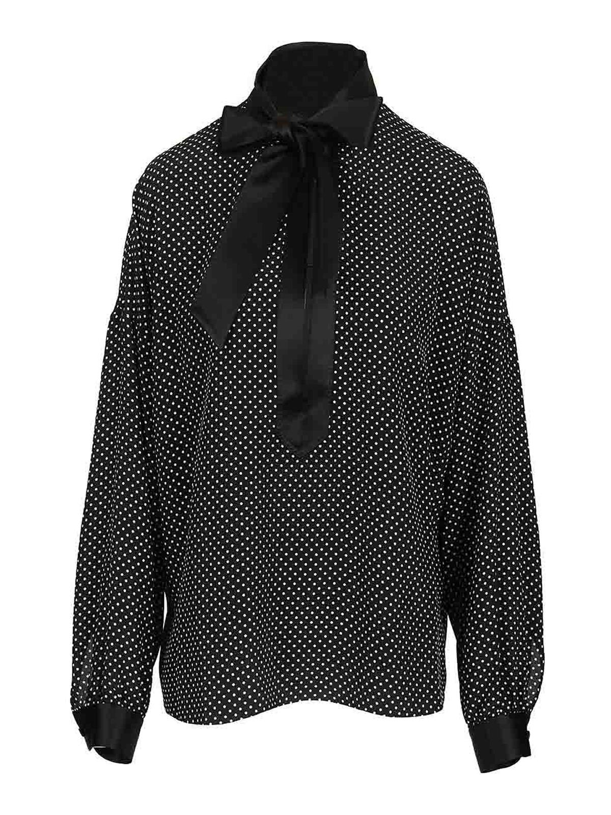ラヴァリエの襟が付いた水玉ブラウス。ややルーズフィット、ノンストレッチ