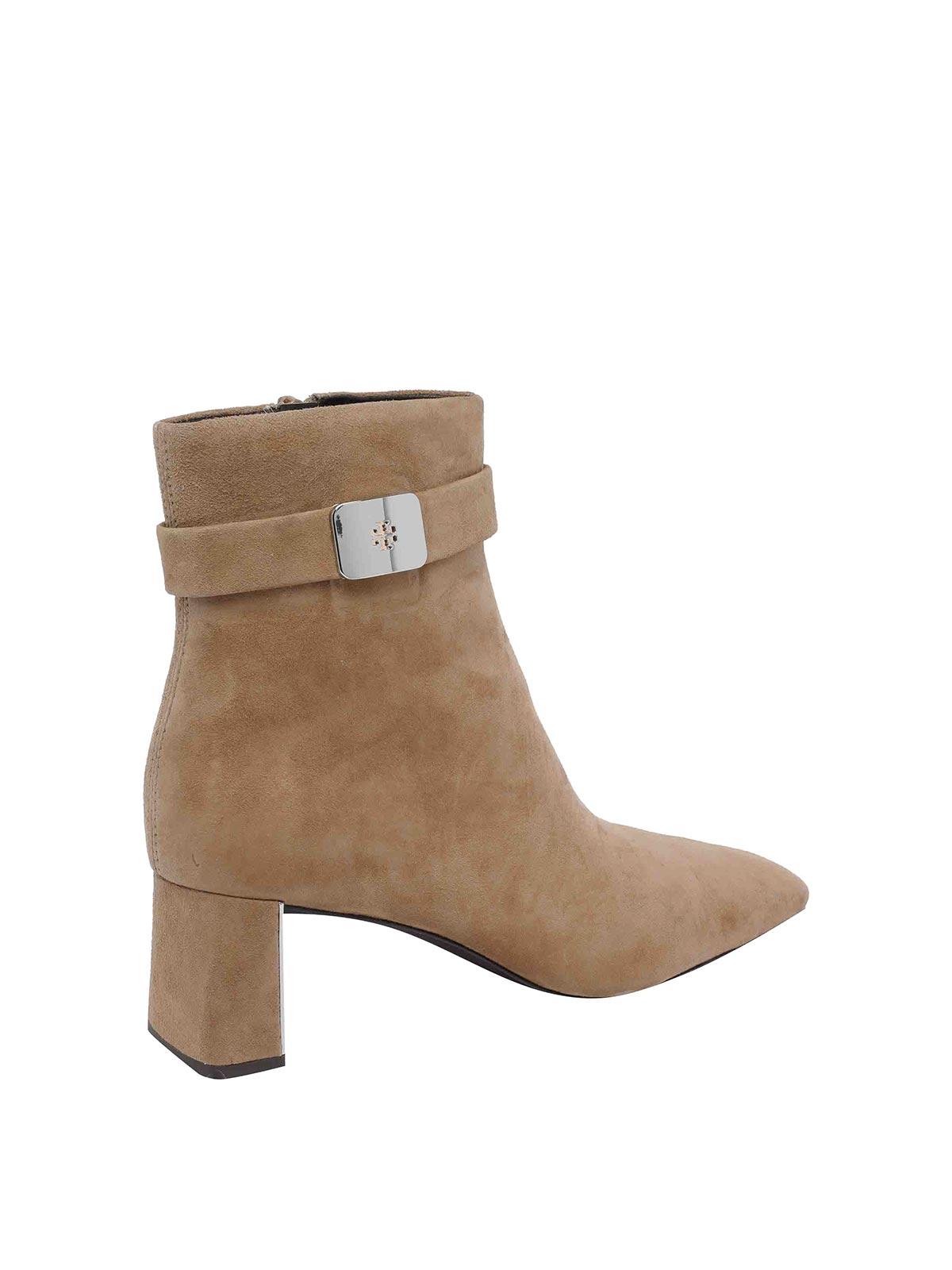 トリーバーチジョージアアンクルブーツ、ポインテッドトゥ、サイドにロゴ、スエードアッパー、レザーソール、サイドジッパー