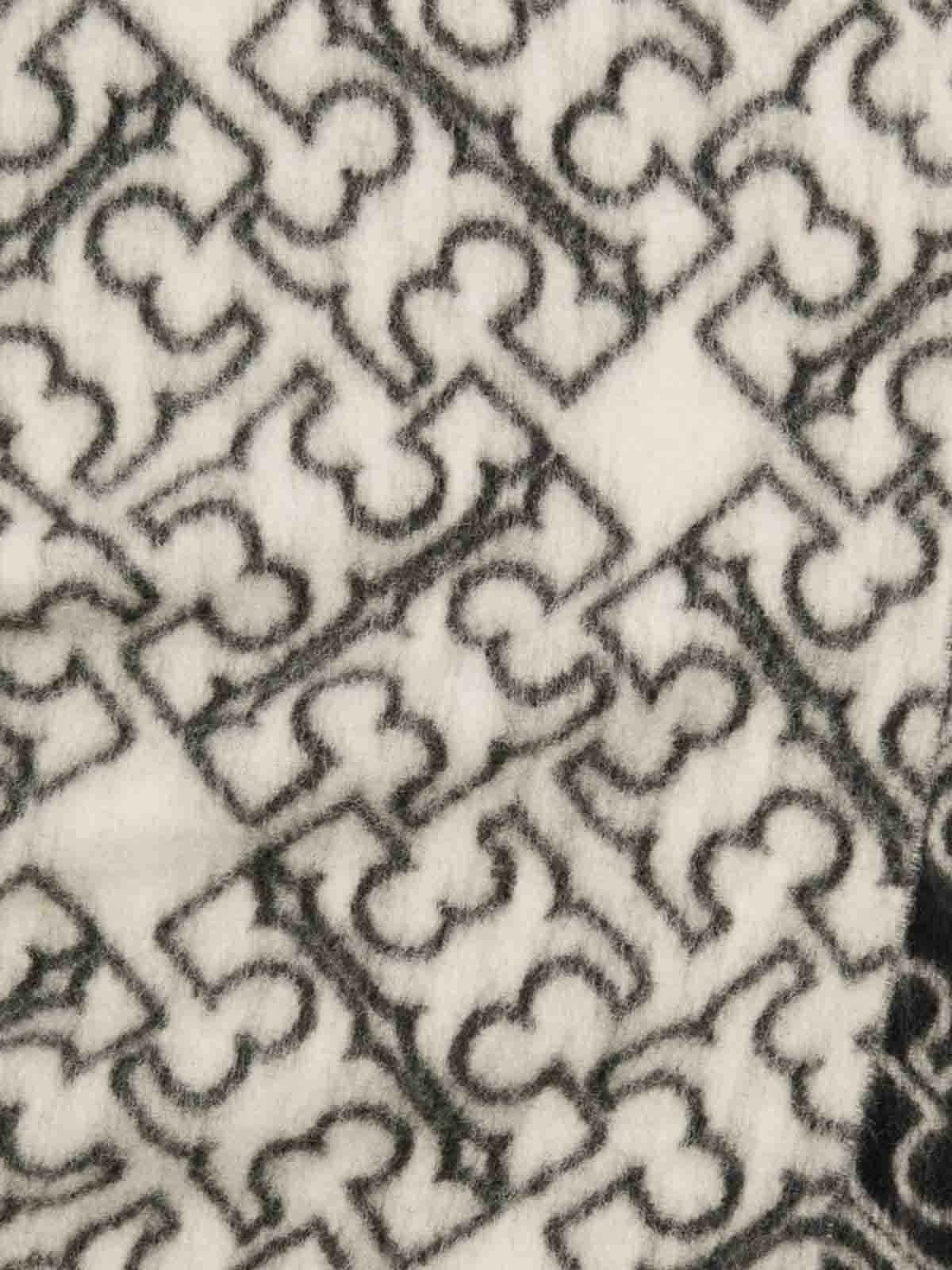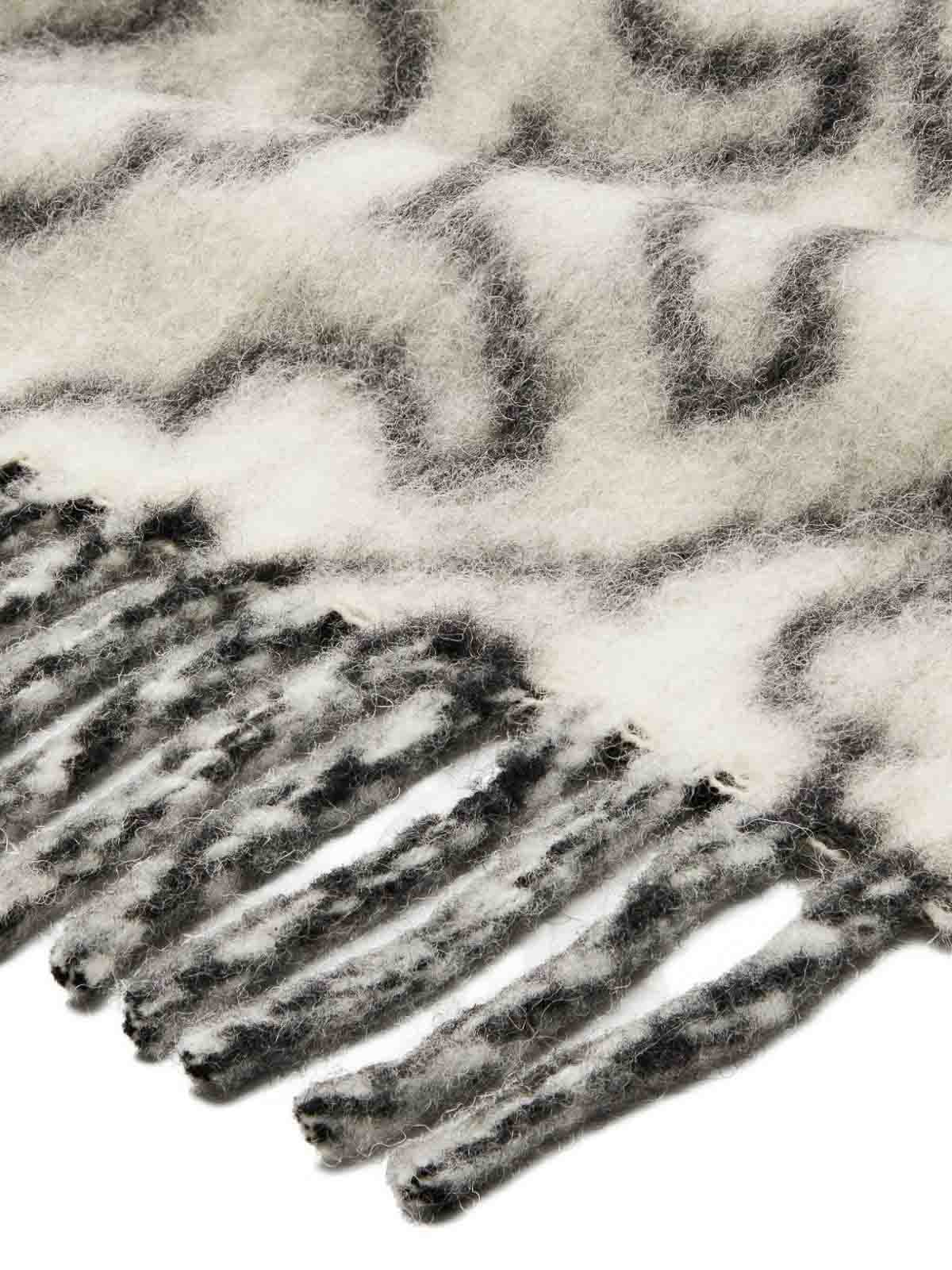 ブラックアイボリーロゴパターンフリンジ付きエッジウール長方形ソフトテクスチャー