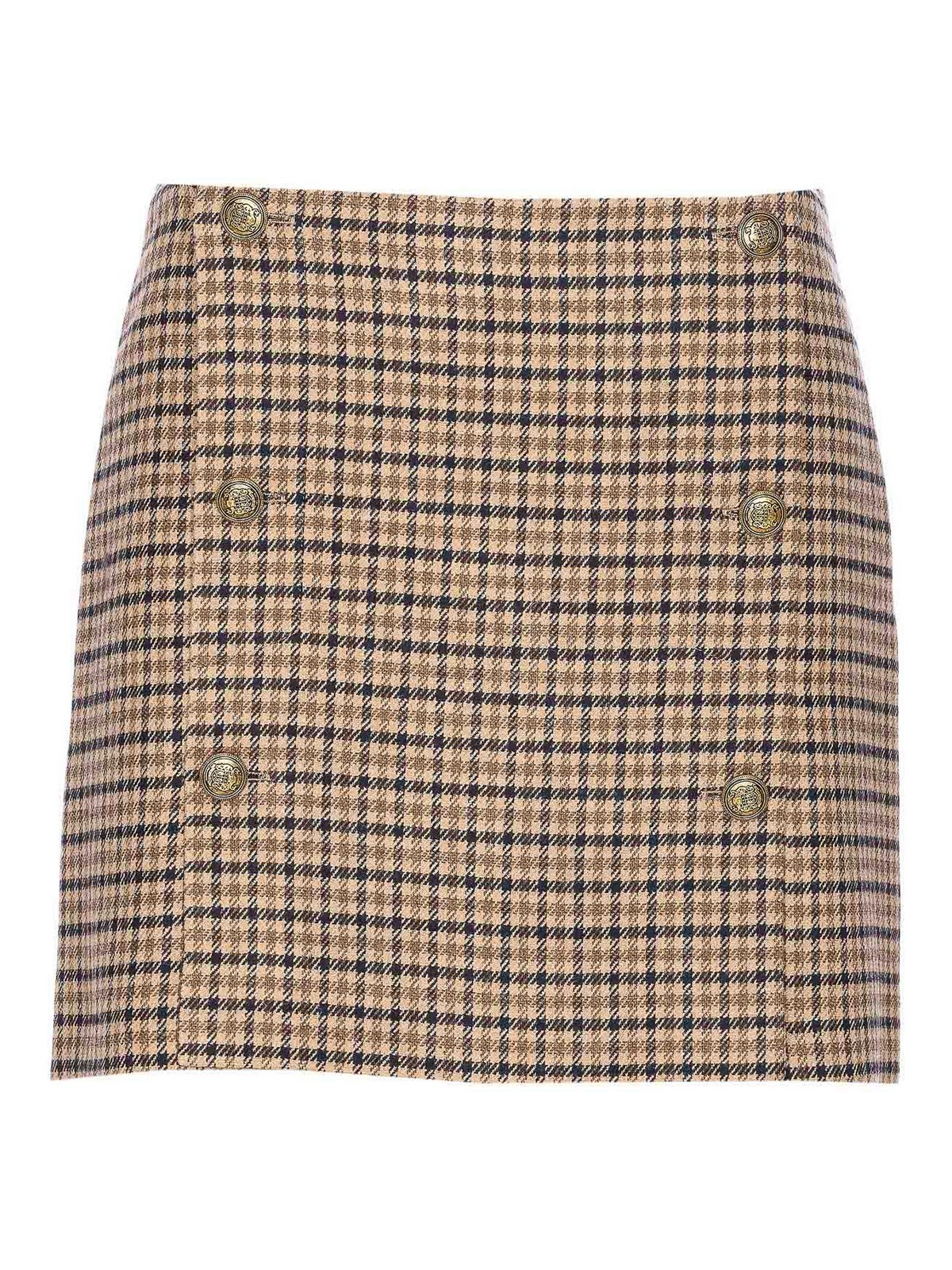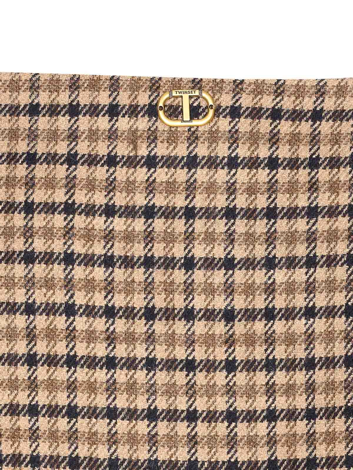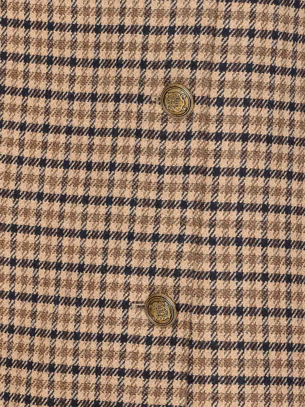 ツインセットベージュチェックモチーフスカートラテラルジップダブルブレストボタン付きデザイナーカラー名:マルチカラー