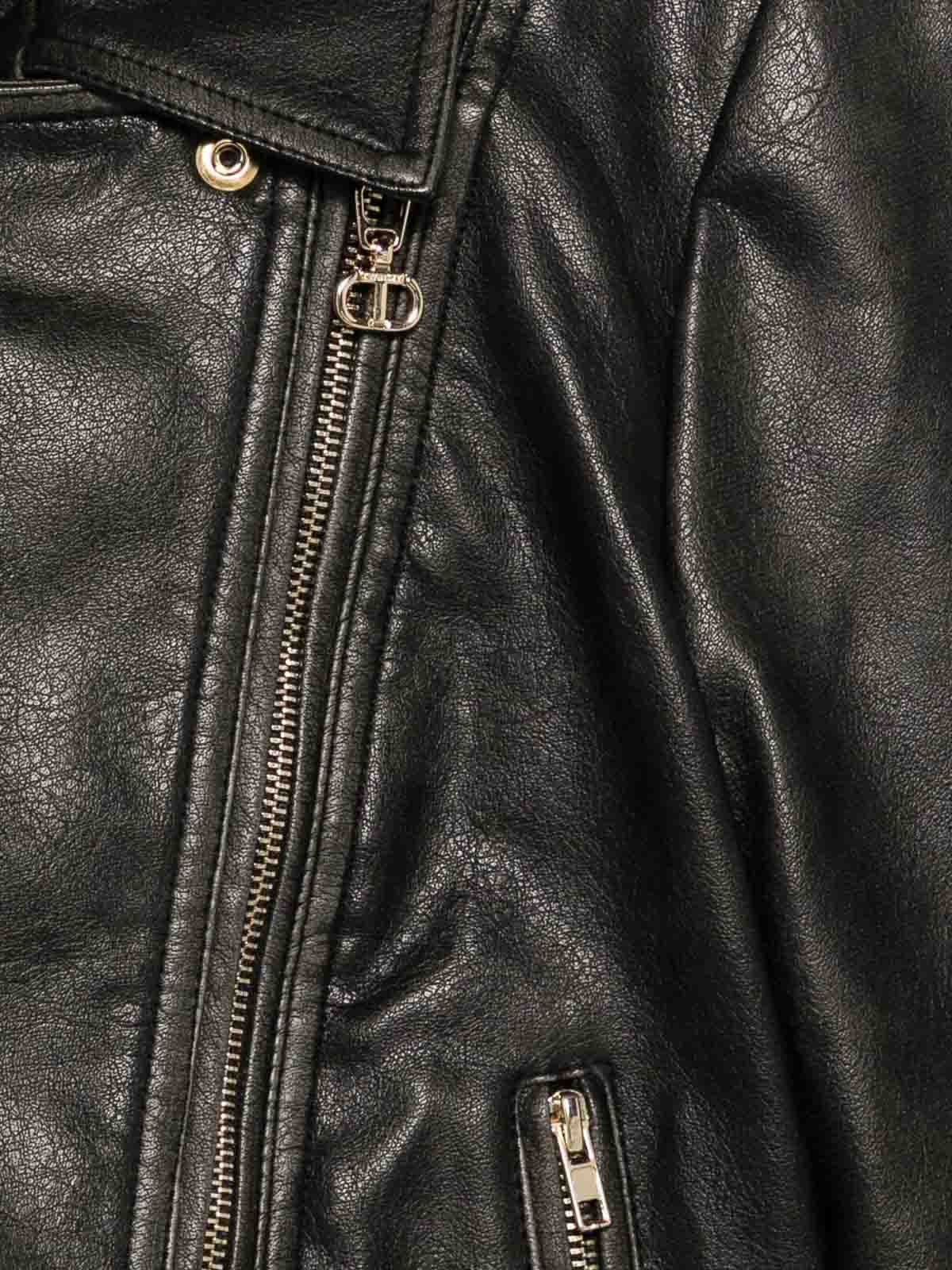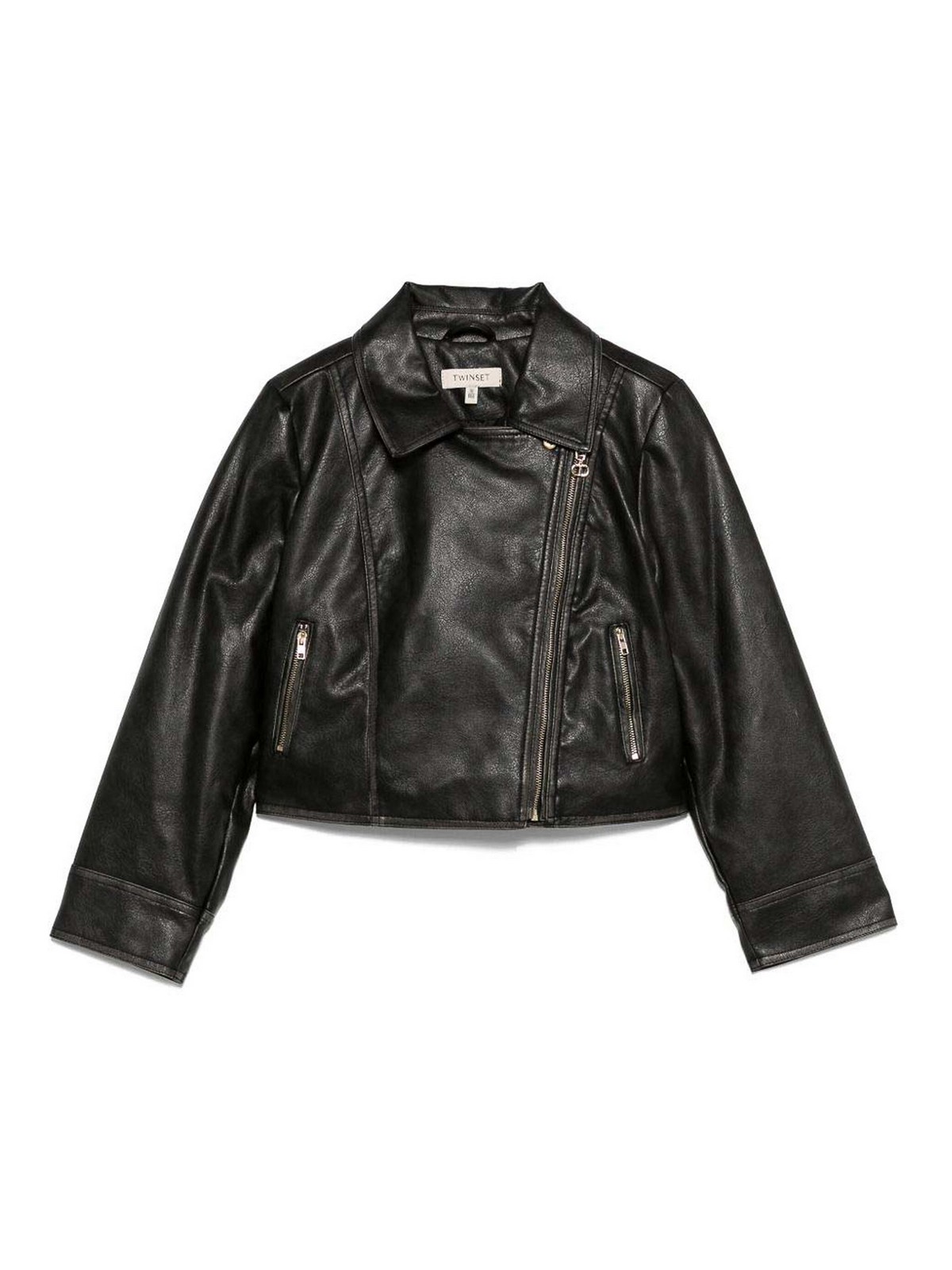 Twinset kidsのブラックフェイクジャケット、アシンメトリックジッパー付き