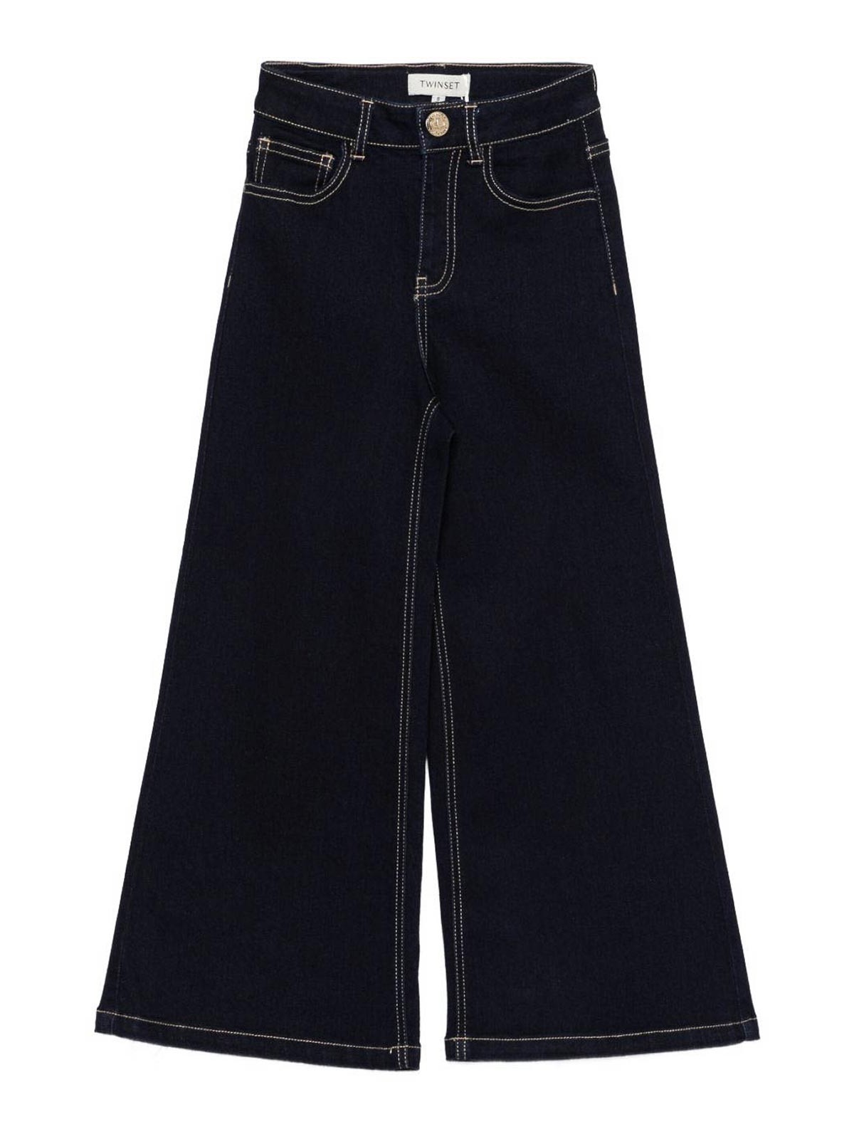 Twinset キッズネイビーブルーブレンドワイドレッグジーンズ