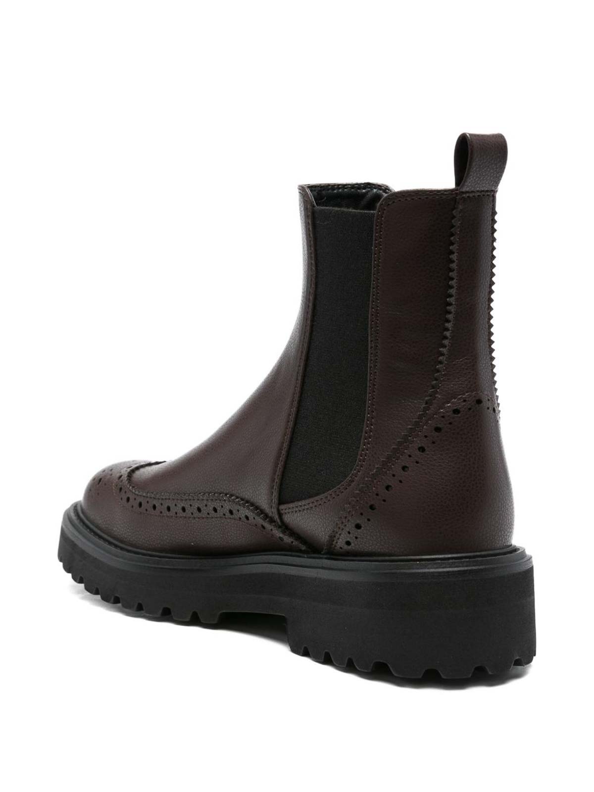 ブラウンエラスティックサイドパネルブローグディテールラウンドトゥチャンキープルタブ