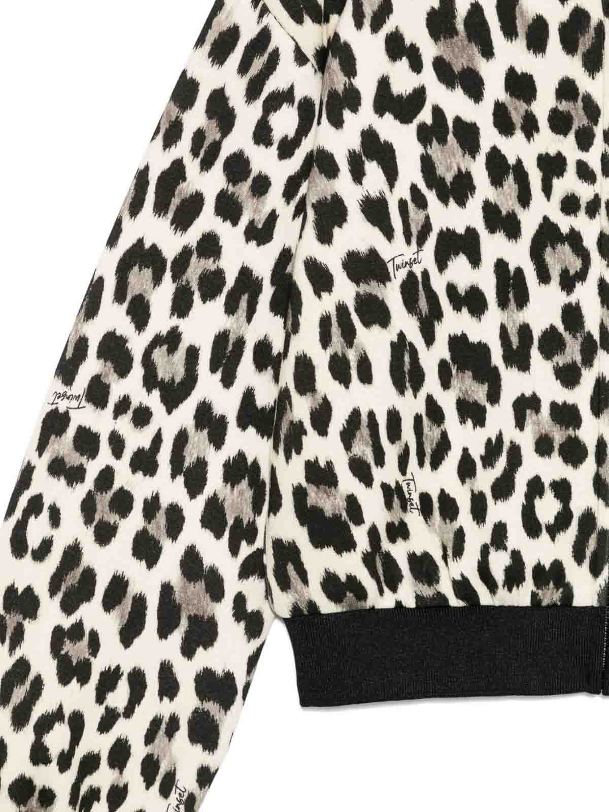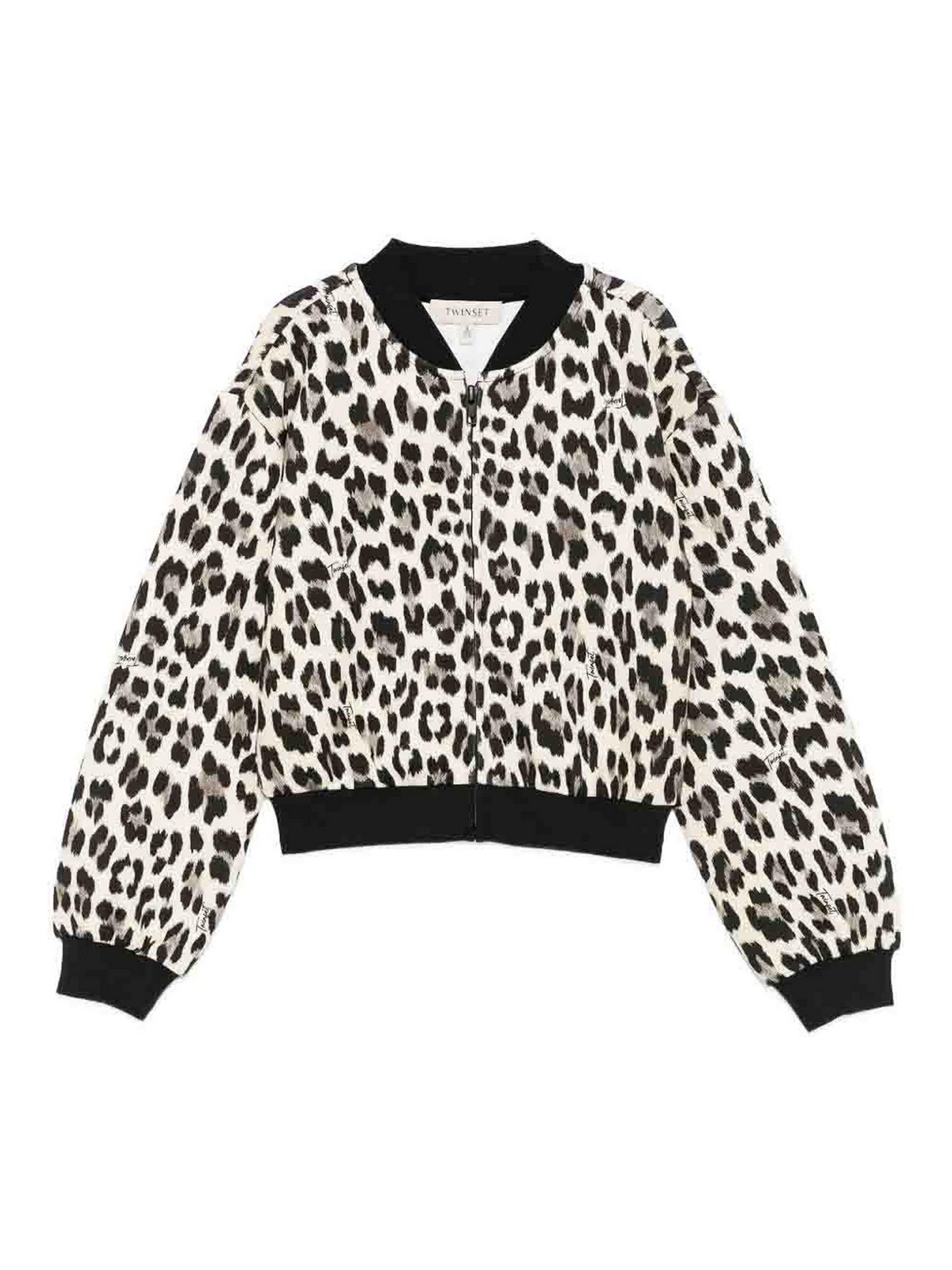 Twinset 子供用女の子用レオパードジップアップスウェットシャツ