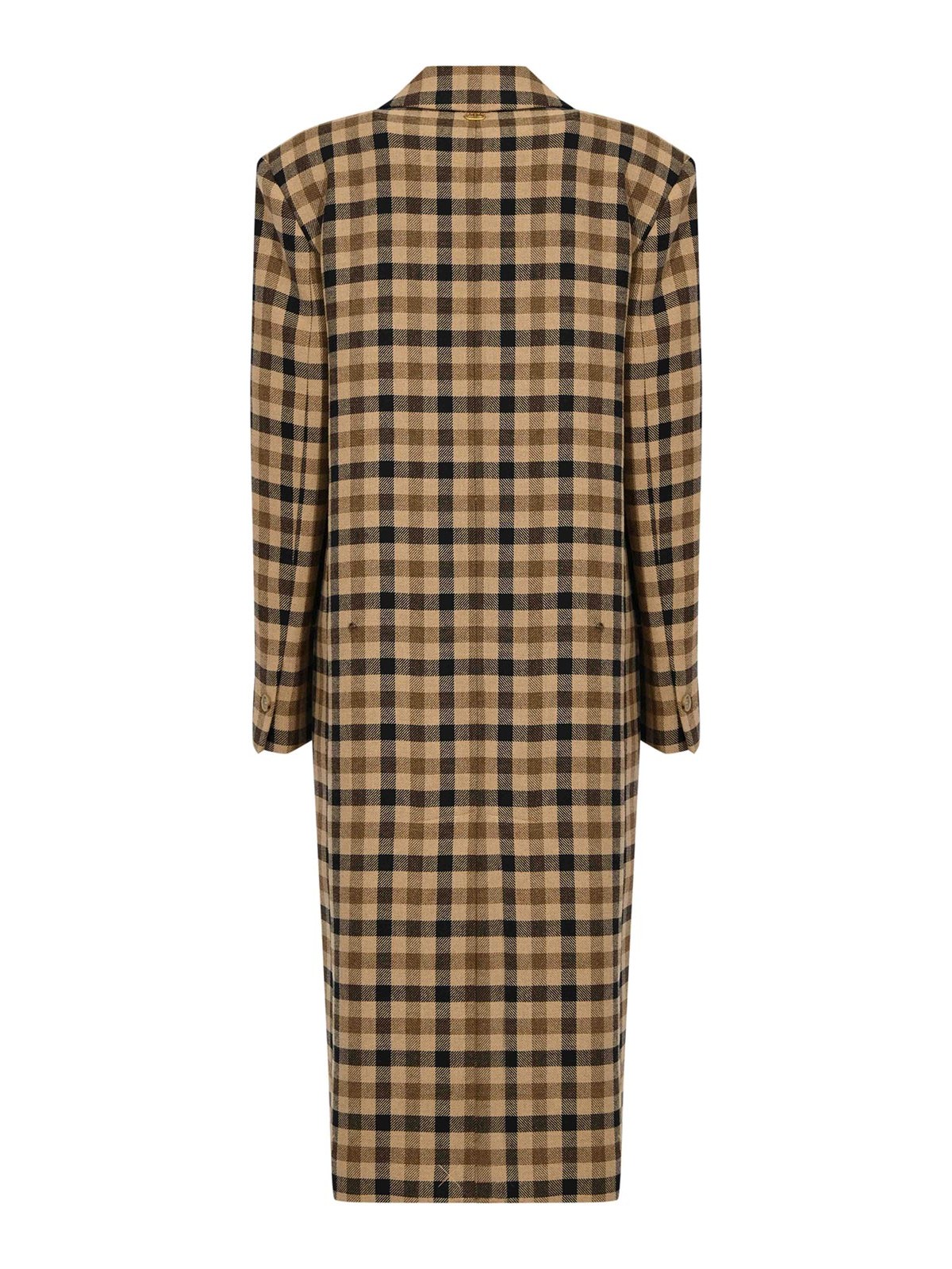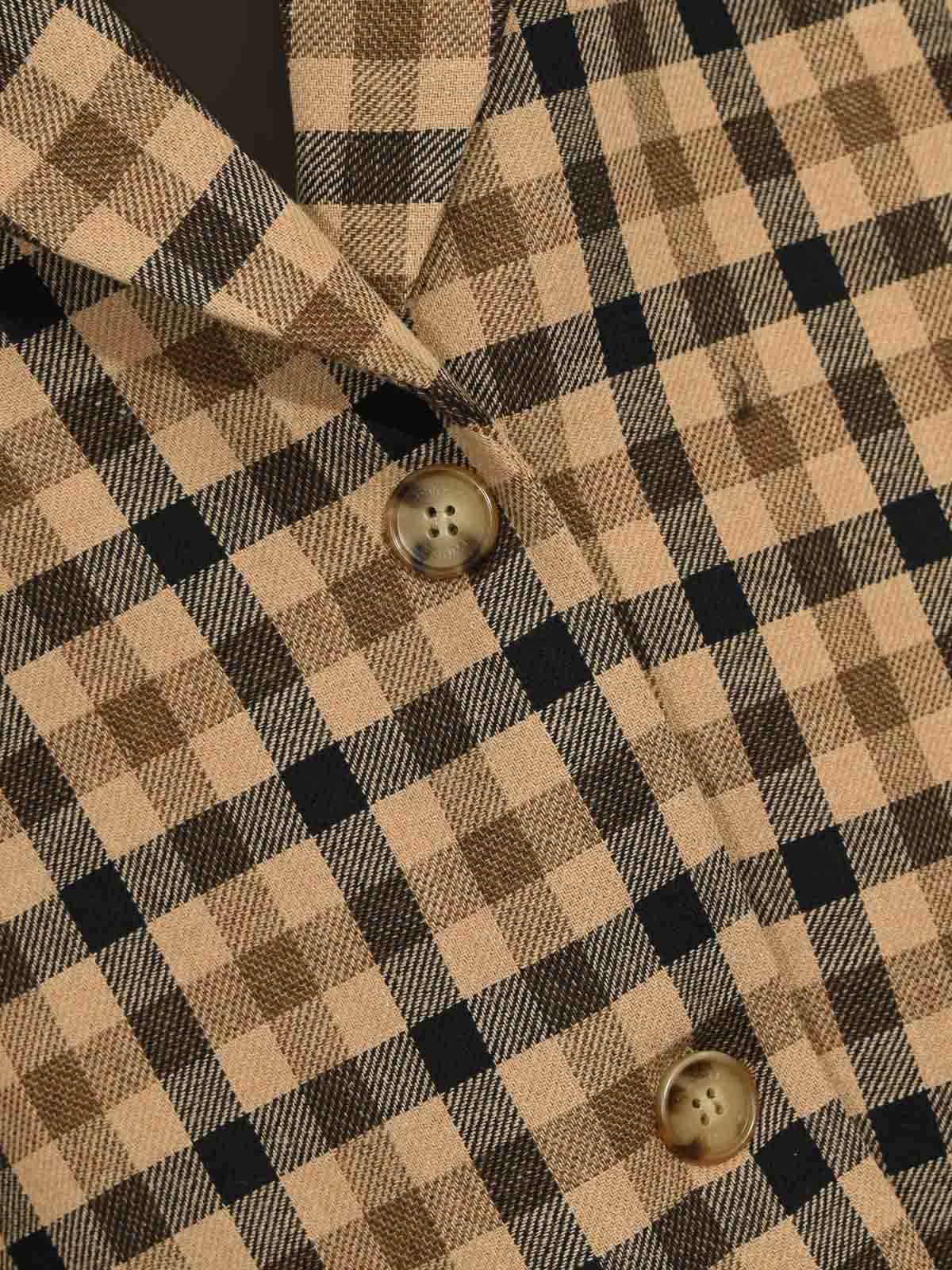 ウール混ツイルロングスリーブ V型、襟付きシングルネック、胸元ボタン付き、サイドポケット付き、背面にロゴプレート