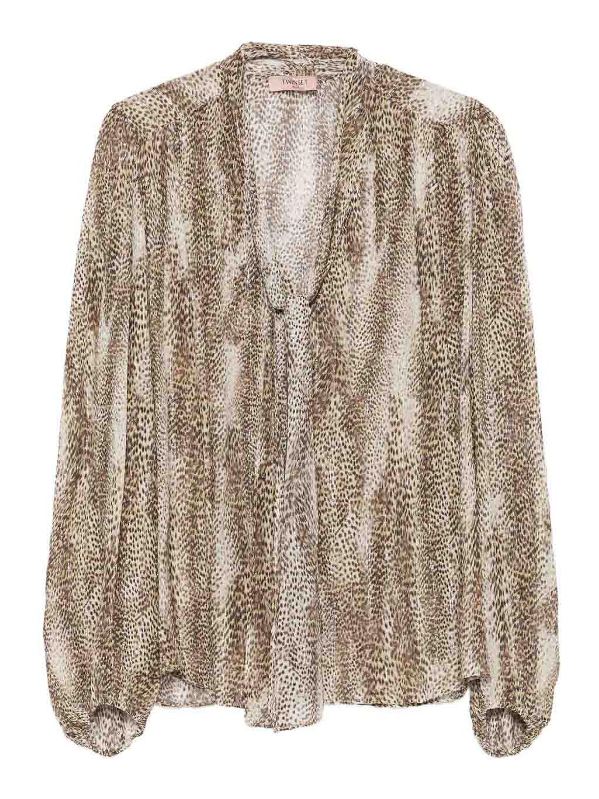 ブラウンアニマルプリントラバリールカラーバルーンスリーブ