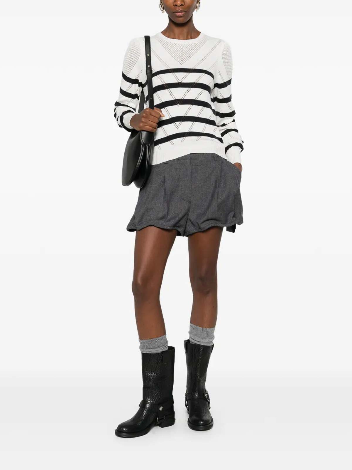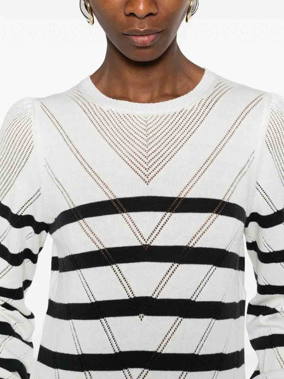 ストライプデザインのツインセットセーターで、快適で用途が広く、日常使いに最適です。