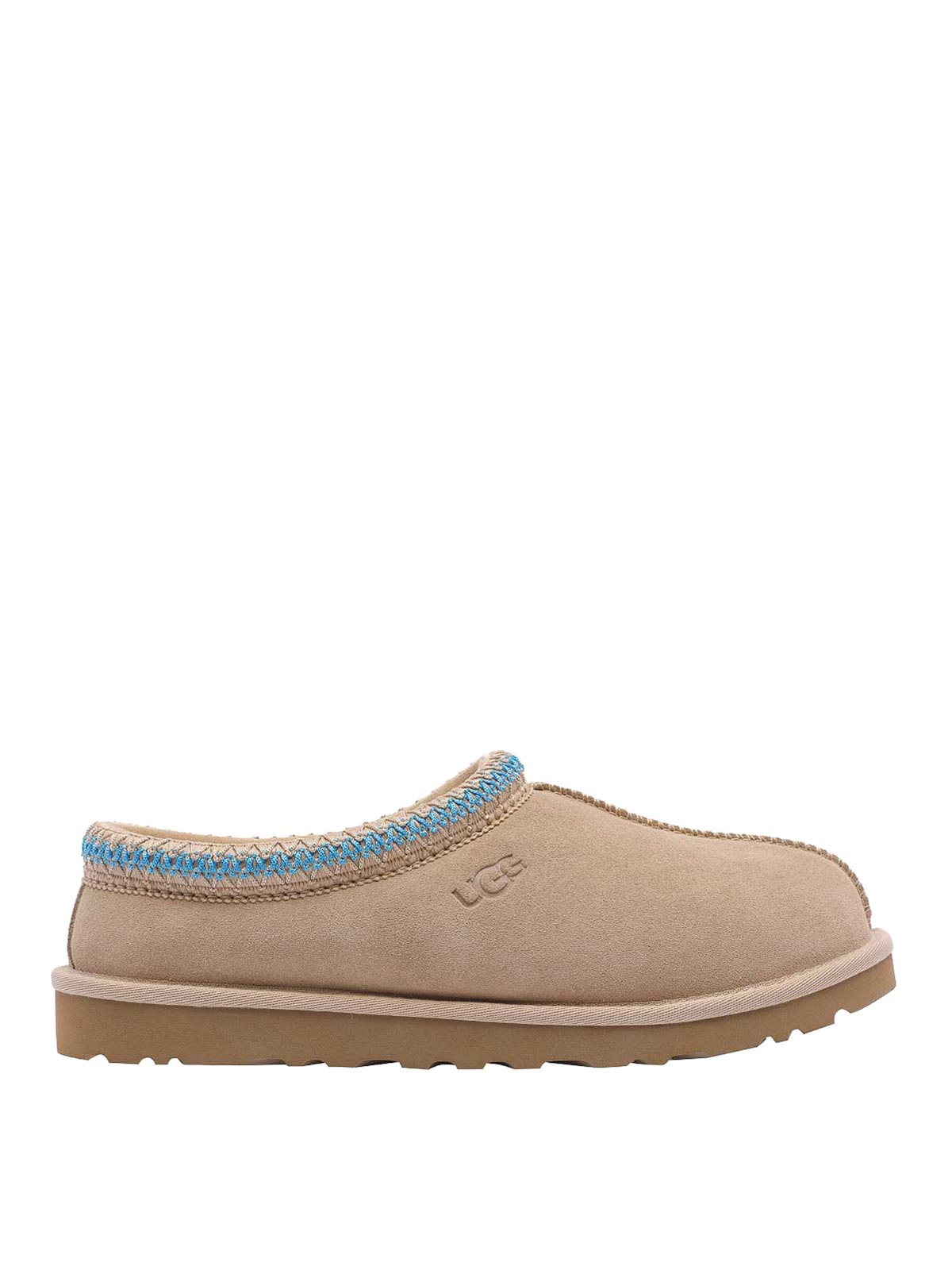 UGG タスマンミュール、ラウンドトウ、スリッポン、サイドにロゴ、スエードレザーアッパー、ラバーソール