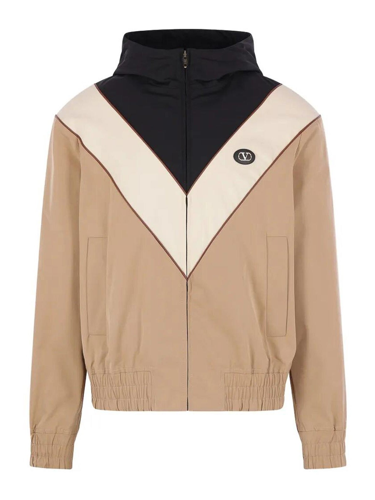 VLogoシグネチャーのディテールをあしらったメンズジャケット。上質な生地とエレガントな作りです。キャメルバターブラックのカラーコンビネーションが服の洗練された個性を引き立てます。