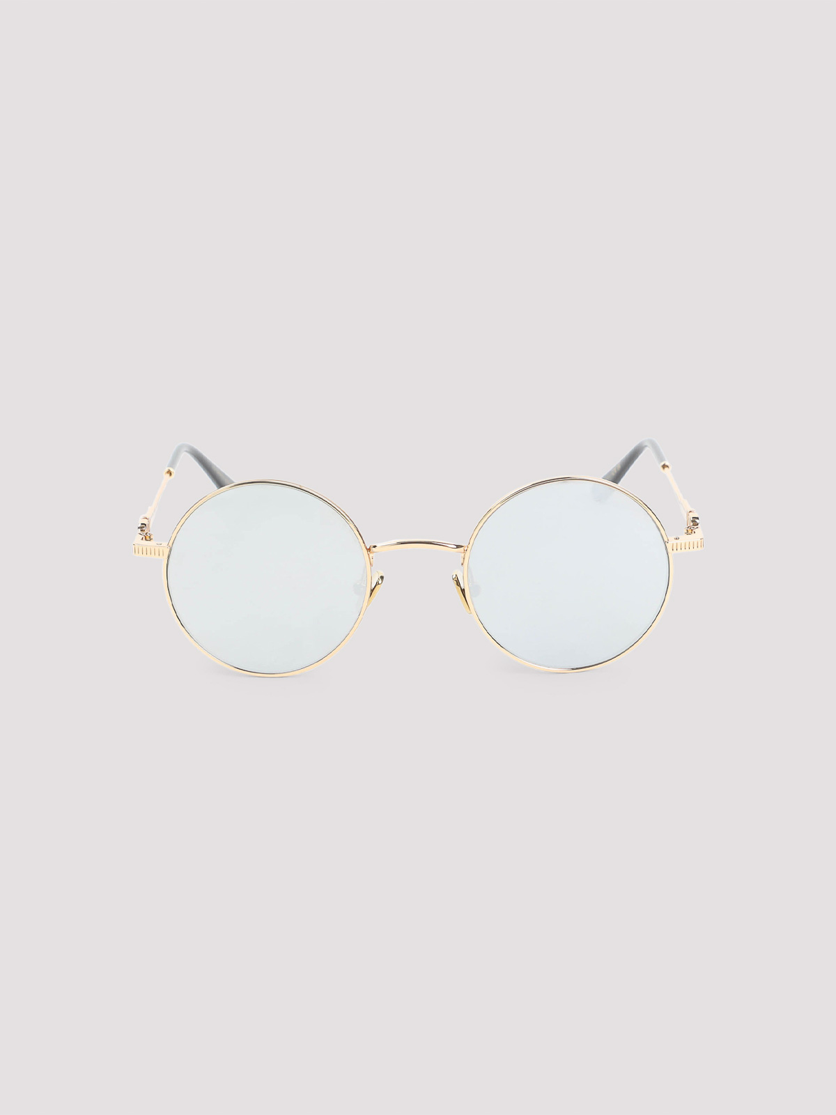 Valentino Garavani ゴールドメタルサングラス。ゴールデントーンのメタルフレーム、ラウンドシェイプ、ライトブルーのレンズ、調節可能なノーズパッド、ロゴ入りファインテンプル。