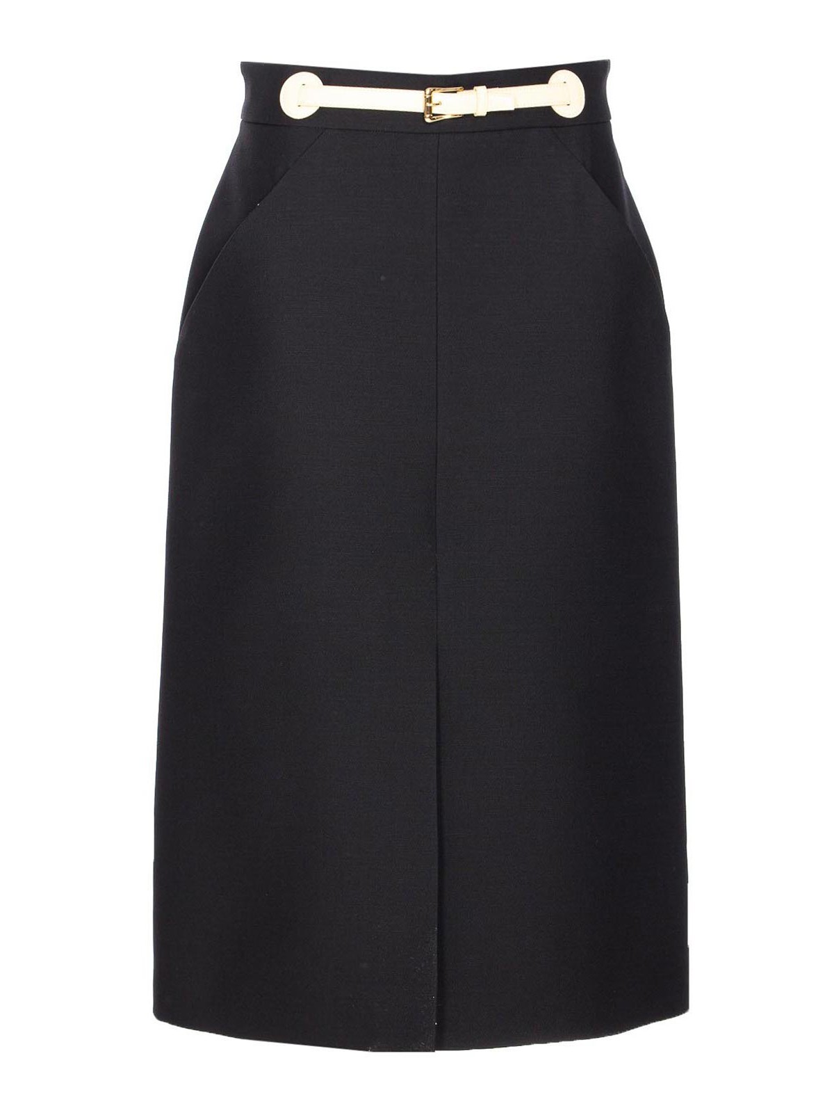 Valentino Garavani ブラックスカートファスナーとフックバックルベルト付きポケットにはスプリット付き