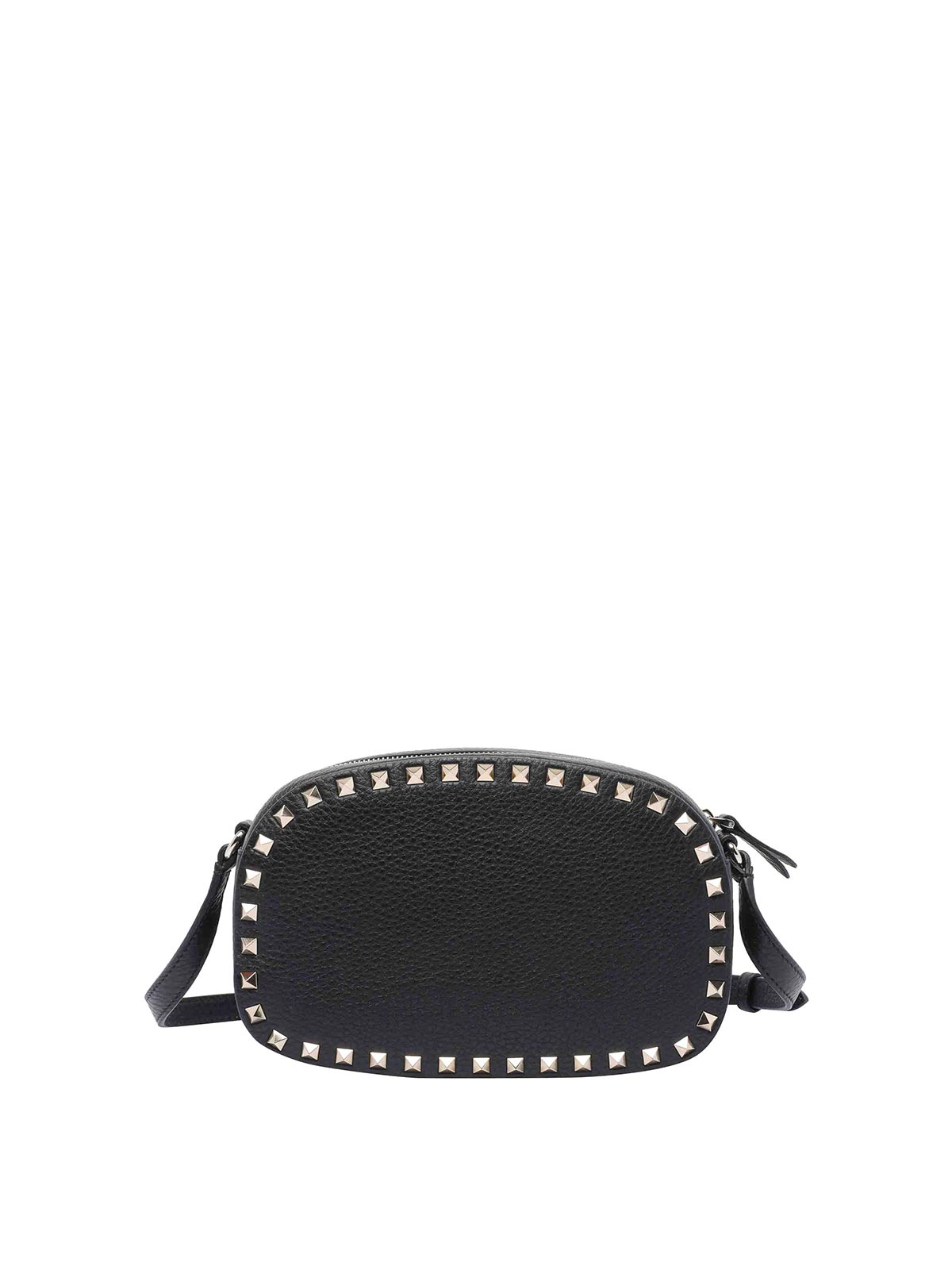Valentino garavani ミニロックスタッズショルダーバッグファスナー付きスロット調節可能ショルダーストラップデザイナーカラー名:ブラック