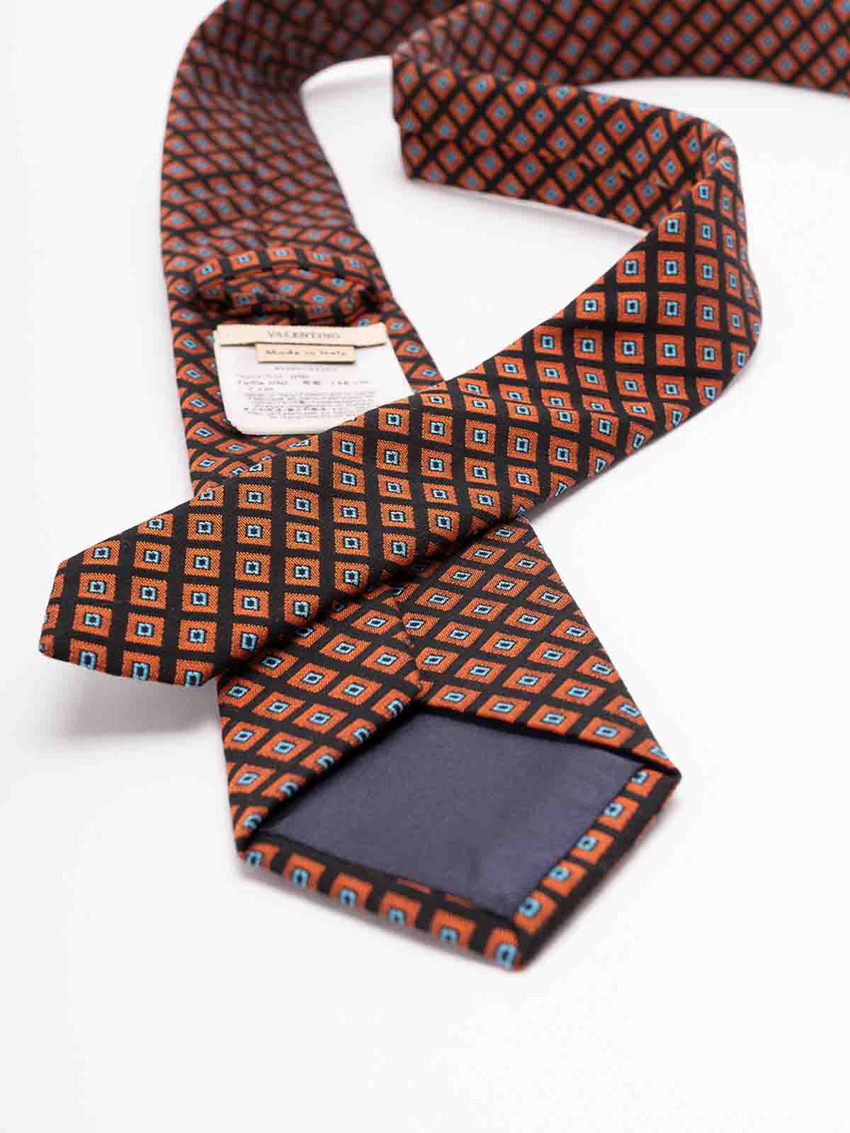 高品質のコットンで作られたValentino Garavaniの絶妙なネクタイでスタイルを高めましょう。黒、オレンジ、マルチカラーのアクセントの見事な組み合わせが特徴のこの作品は、フォーマルにもインフォーマルにも最適なアクセサリーです。イタリア製で、豪華さと洗練さを体現し、どんな人混みの中でも目立ちます。