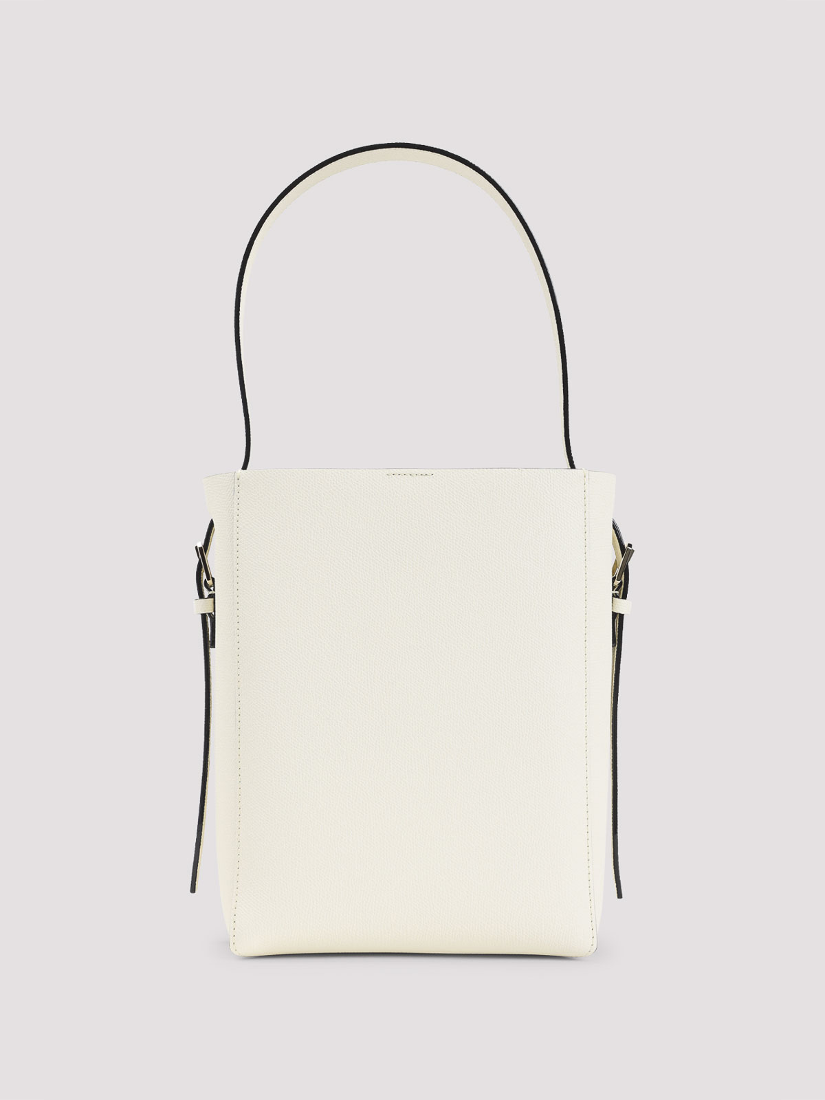 Valextra ペルガメナカーフレザースモールバケットバッグ。ピュアペルガメナカーフレザーショルダーバッグ、上部調節可能なハンドル、フロントポケット、フロントシルバートーンナンバー、取り外し可能なジッパー付きインナーポケット、メインコンパートメント1つ。バケットデザイン。