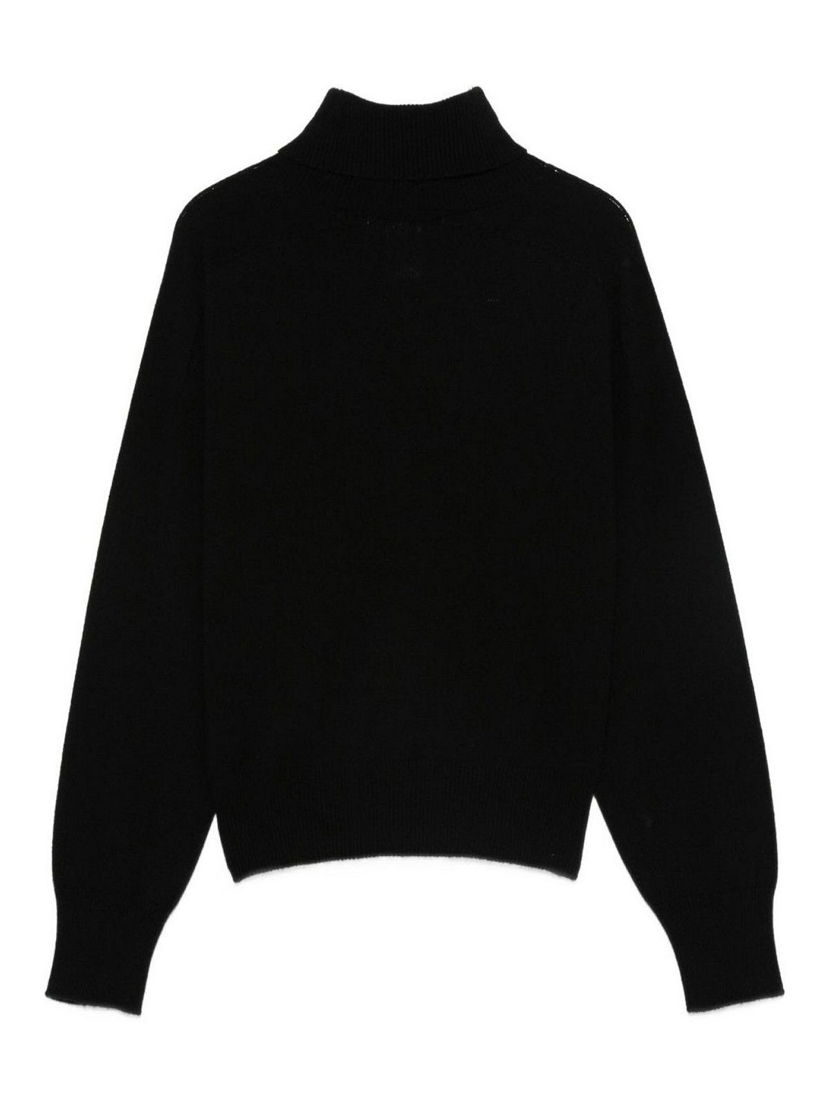 ブラックタートルネック長袖リブ編みカフスストレートヘム