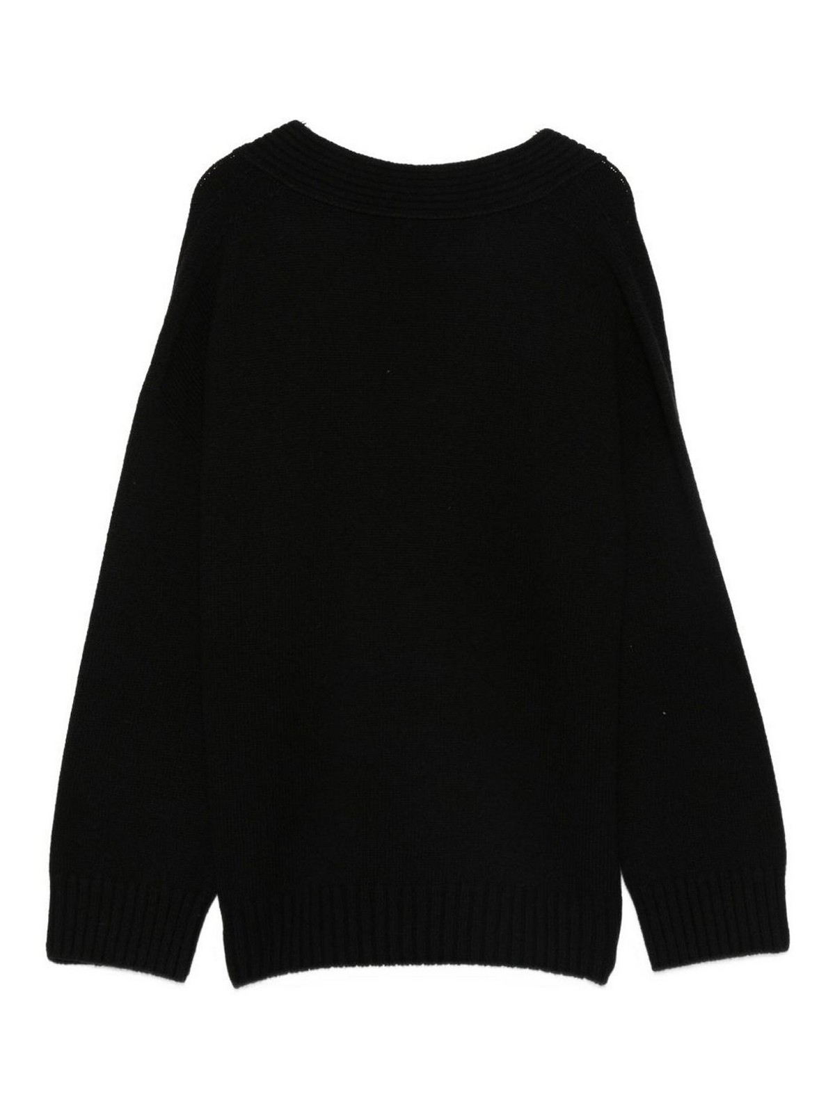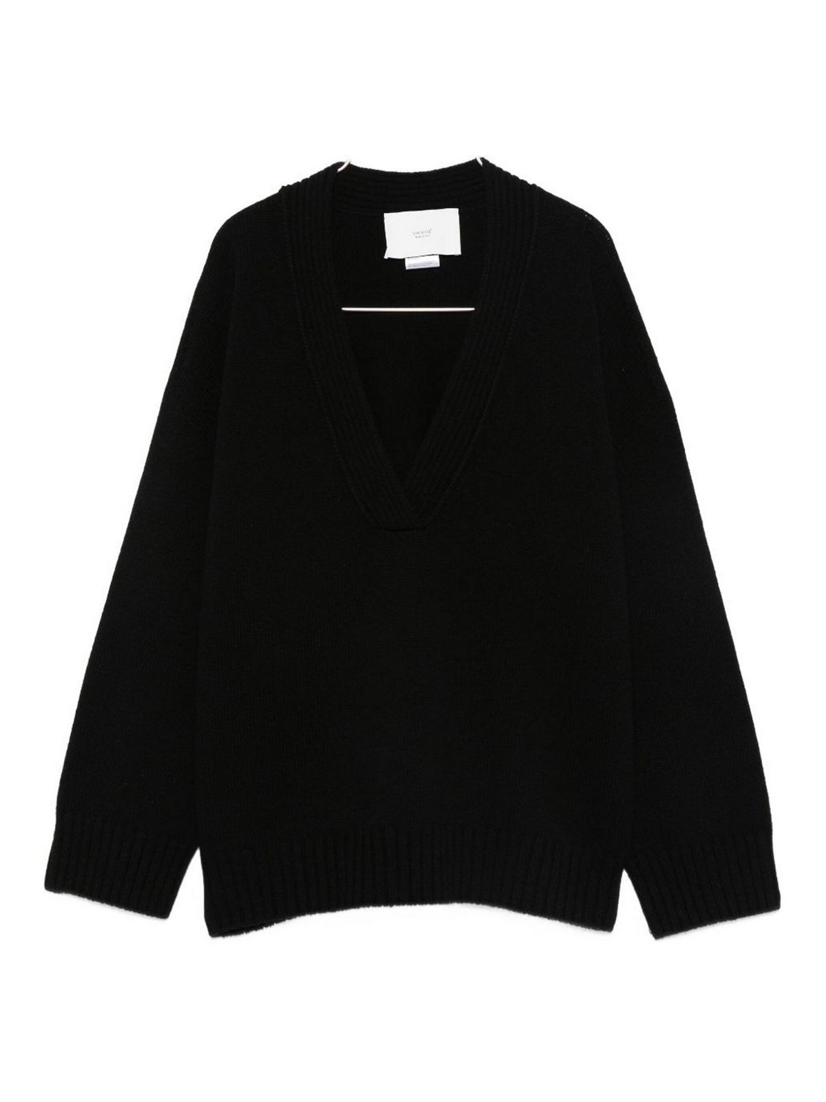 ブラック Vネックリブニットロングスリーブストレートヘム