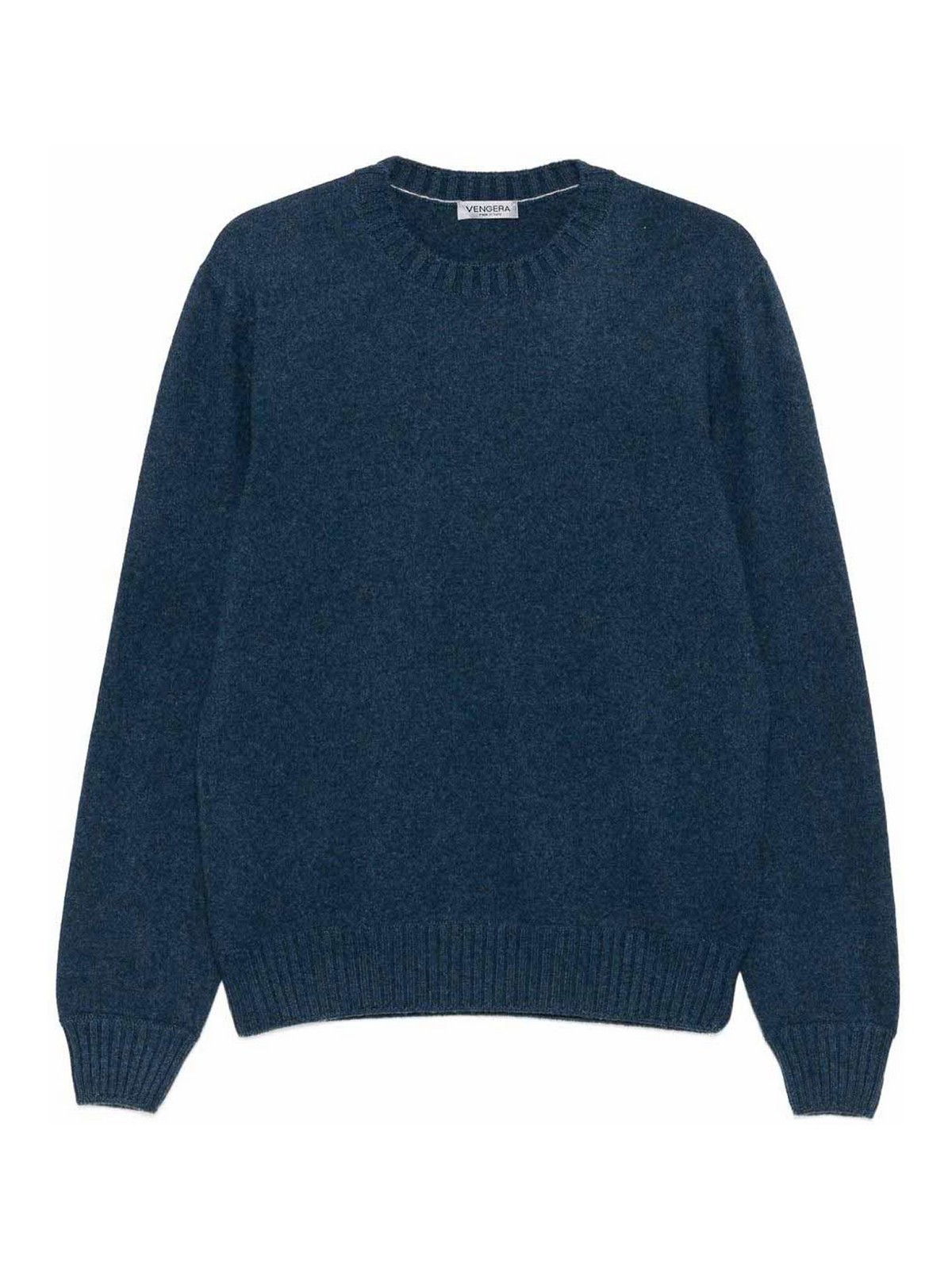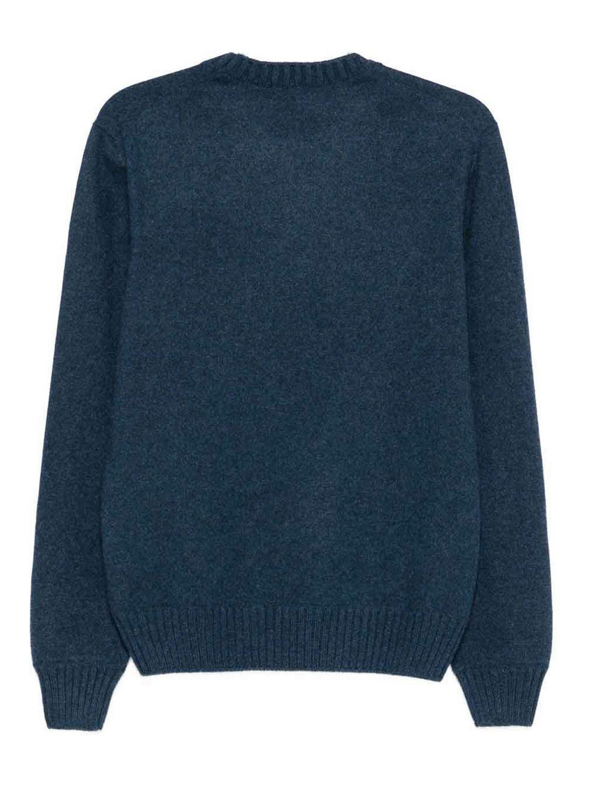 ブルーリブカフスリブ付きヘムラウンドネックロングスリーブ