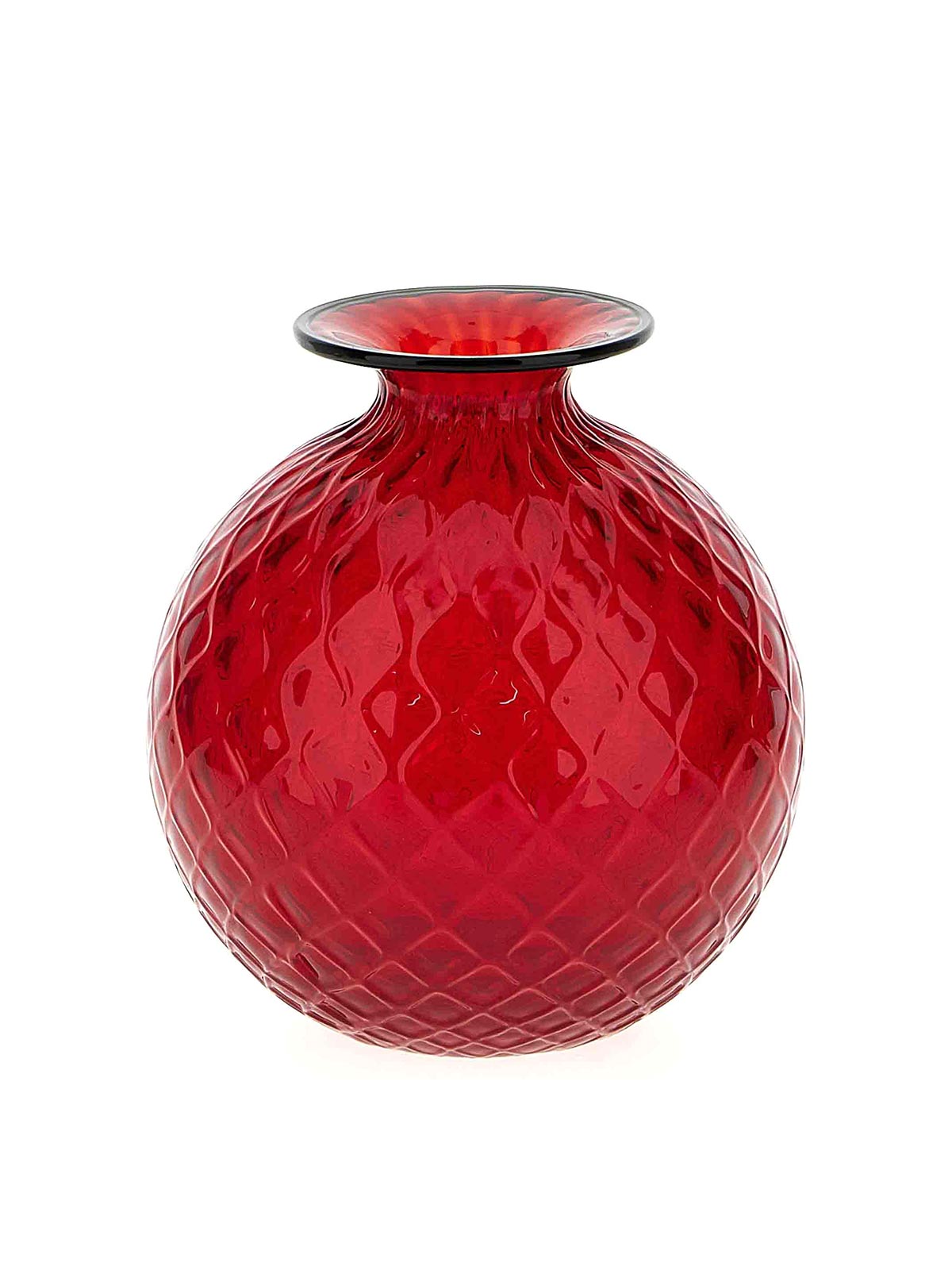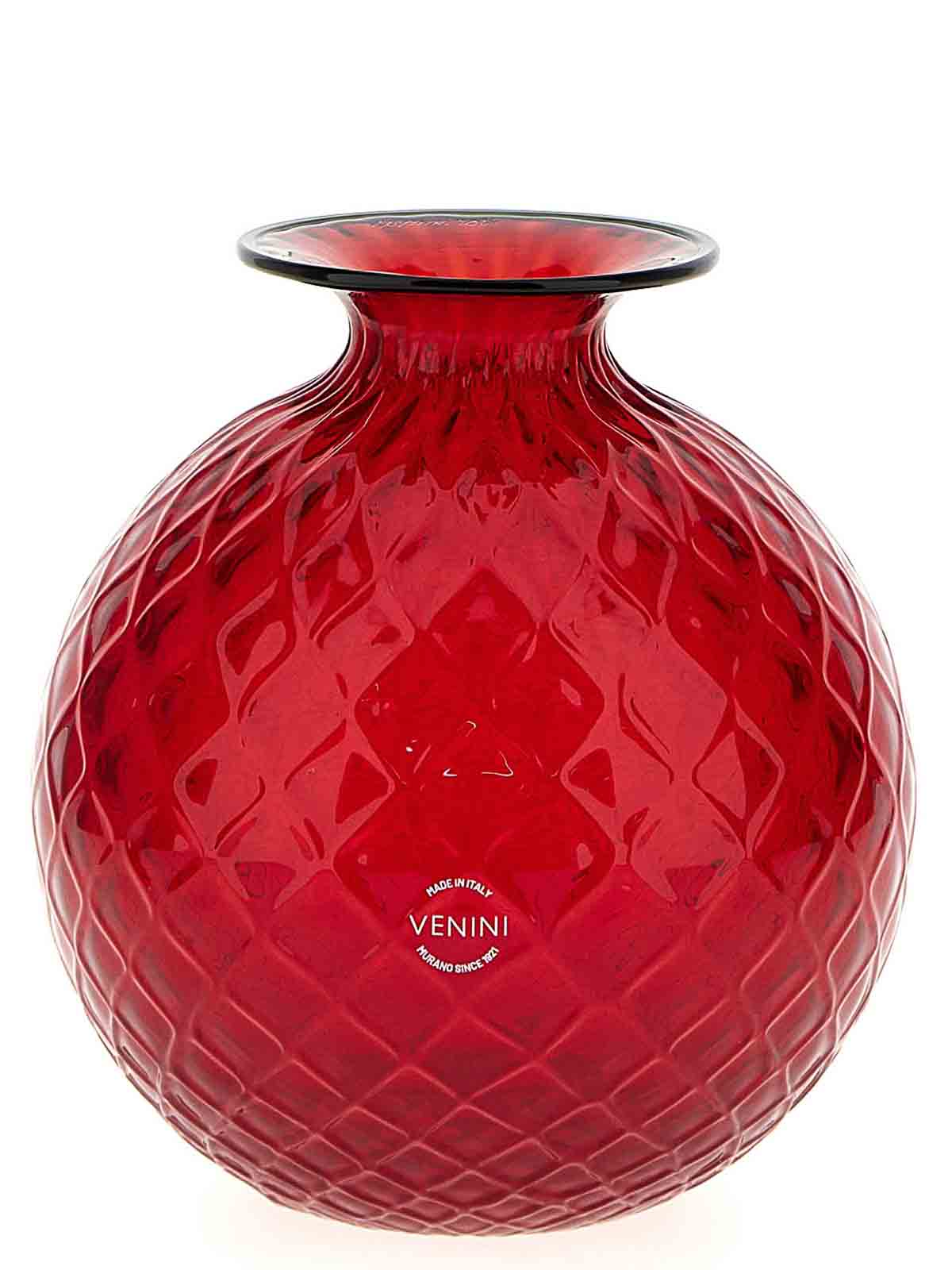 見た目は柔らかいのにガラスです。ヴェニーニの1970年のモノフィオリの目の錯覚は、その名のとおり、表面にキルトのような効果を再現するユニークなプロセスであるバルーンです。作品は手作りで、特徴的な金型で吹き付けられ、色の異なる色の糸を熱く塗って細いネックに仕上げています。
