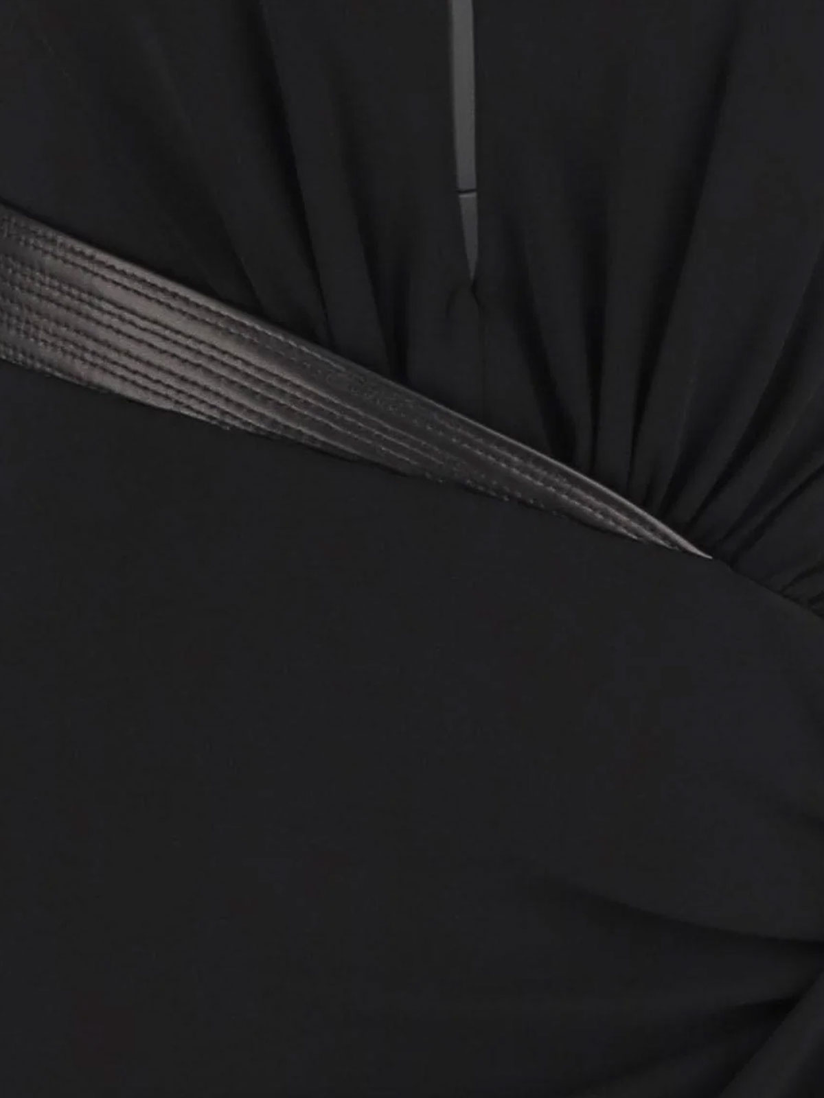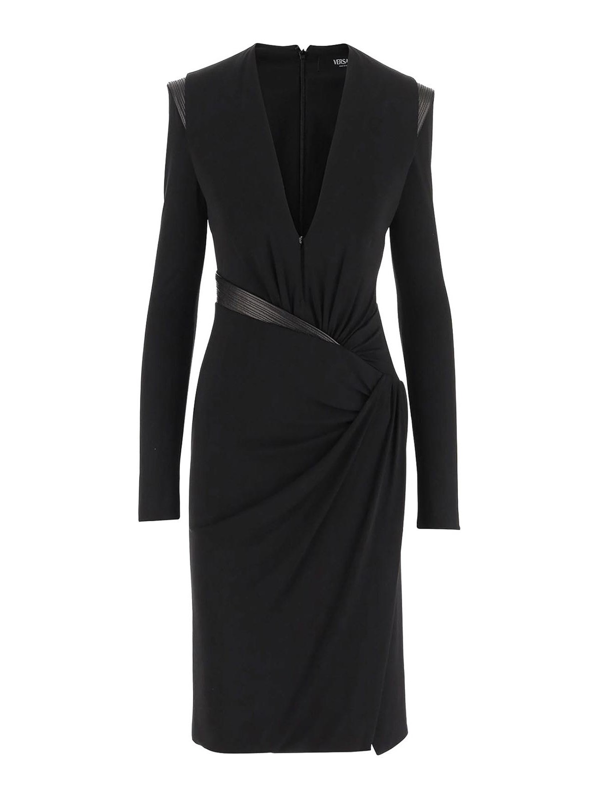 バックファスナーパッド入りショルダーストラップフロントドレープロングスリーブ裏地付きイタリア製 95% ビスコース 5% エラステイン