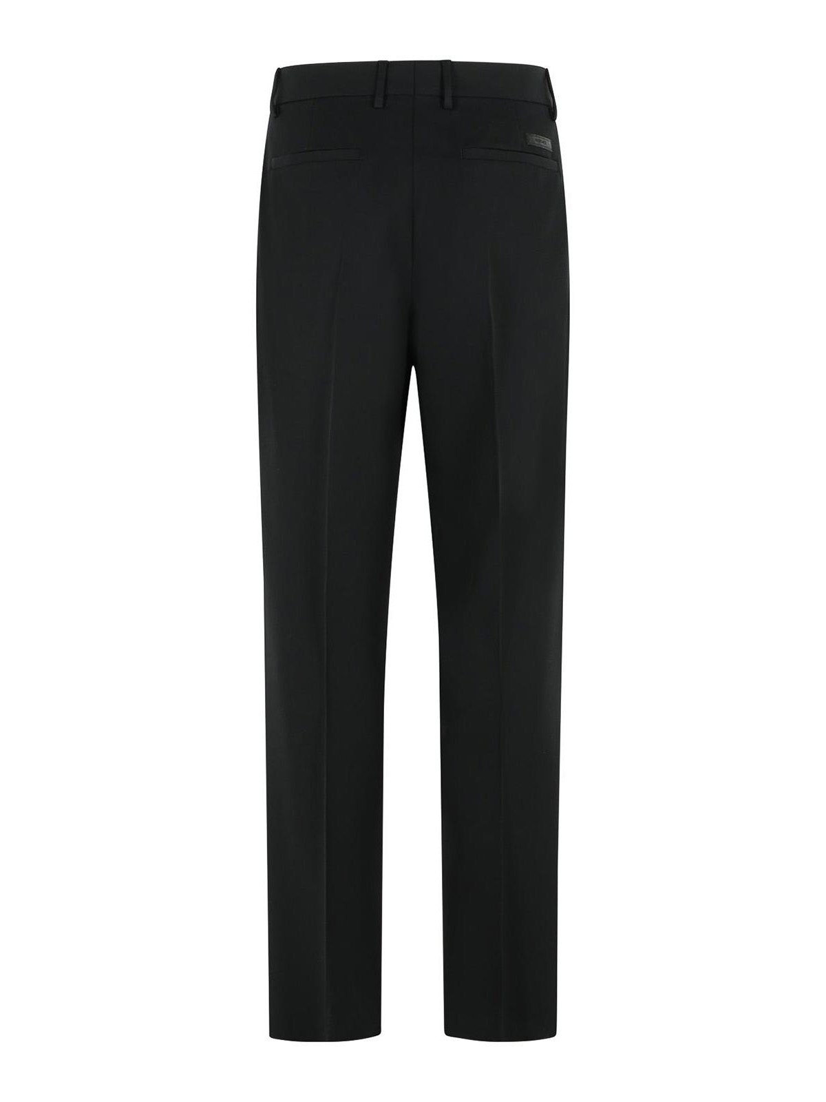 ループ付きウエスト、隠しファスナー、ウエストにフックとボタン、前面に「メドゥーサ」デコレーション、サイドスリットポケット、後ろにウェルトポケット、背面にロゴ刺繍入り同系色ラベル