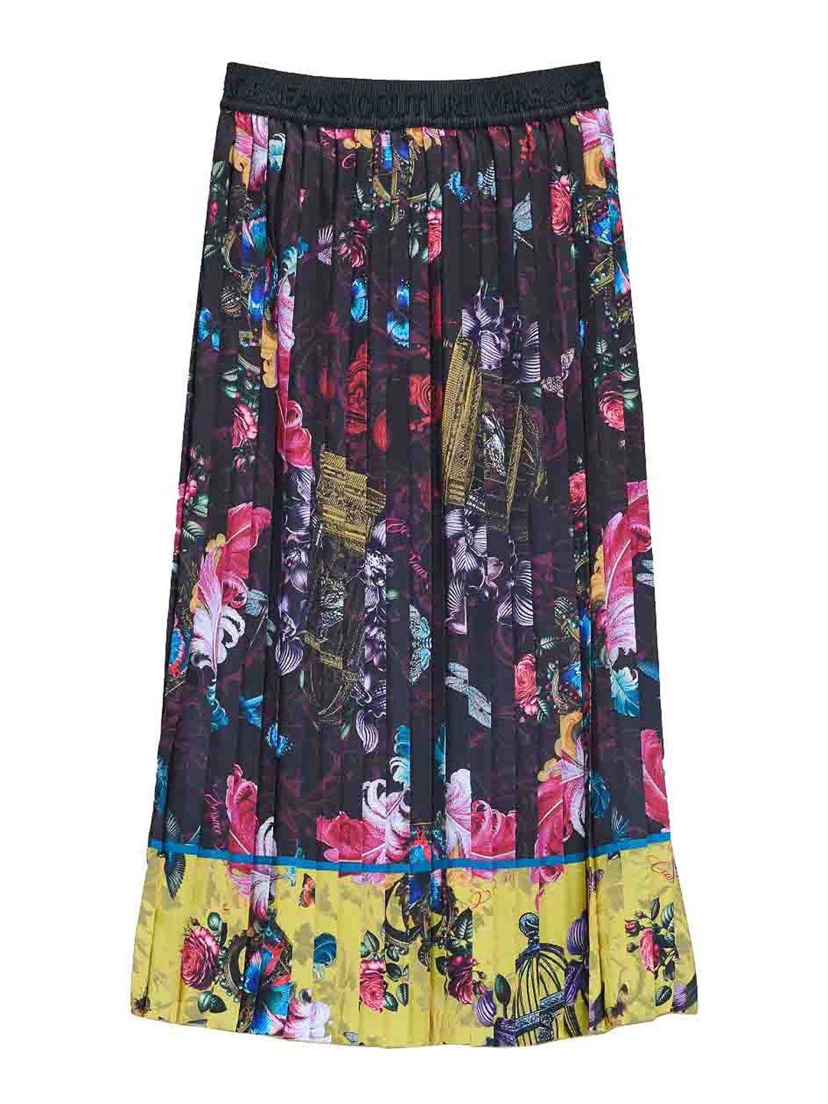 Cabinetのプリーツスカート。マルチカラー。季節のプリントが施されたヴェルサーチスカート。プリーツデザインで、ロゴが刺繍された伸縮性のあるウエストバンドが特徴です。季節限定プリント、ロゴ刺繍入り伸縮性ウエストバンド、プリーツデザイン、ストレートヘム、ミディ丈。色:マルチカラー。100% ポリエステル。イタリア製。