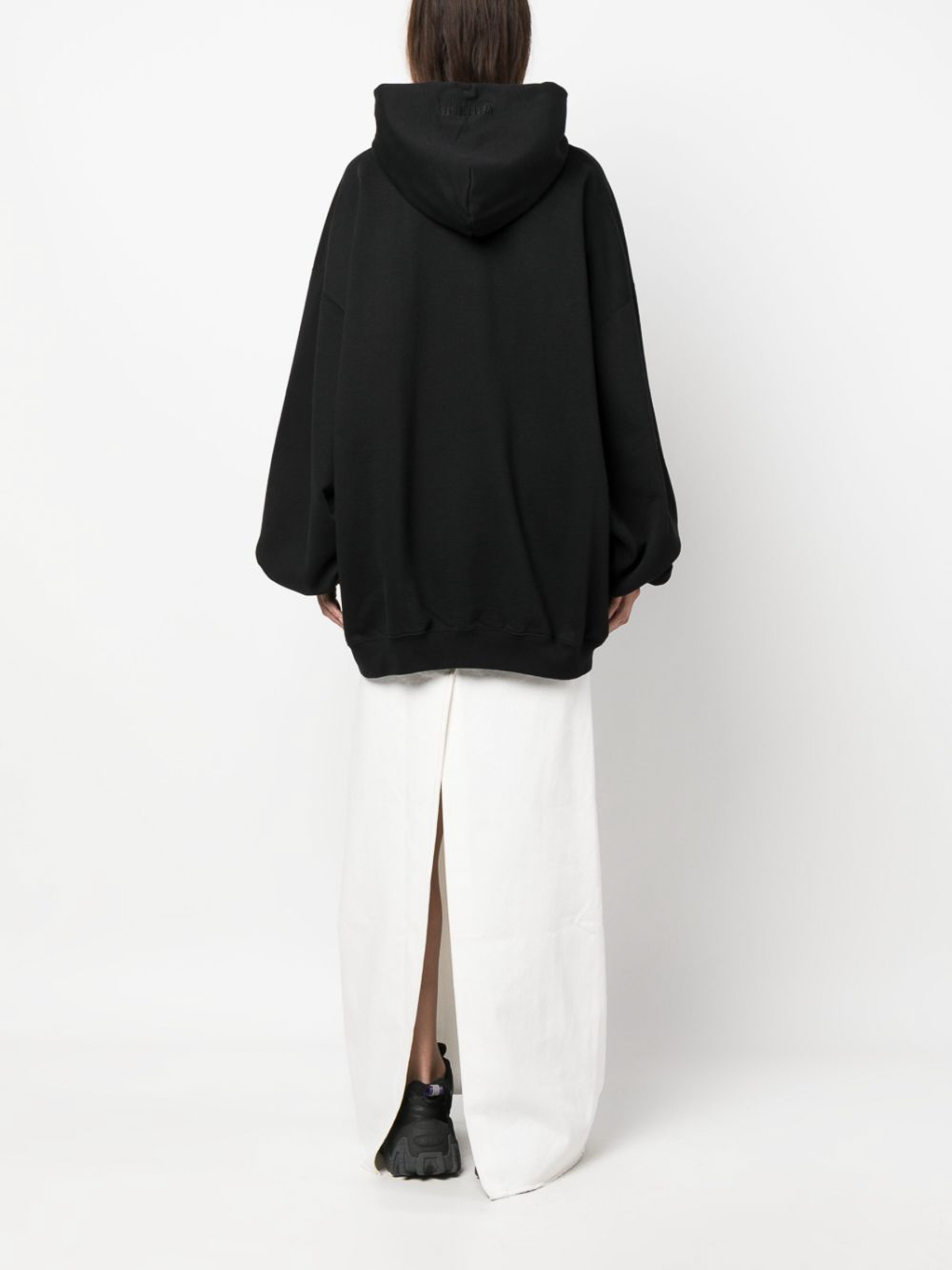 Vetements (vip) のロゴプリントコットン混紡パーカーは、フロントドローストリングフード、ドロップショルダー、ロングスリーブ、フロントポーチポケット、ストレートヘム、リブ編みの袖口と裾にブラックコットン混紡ロゴプリントが特徴です。